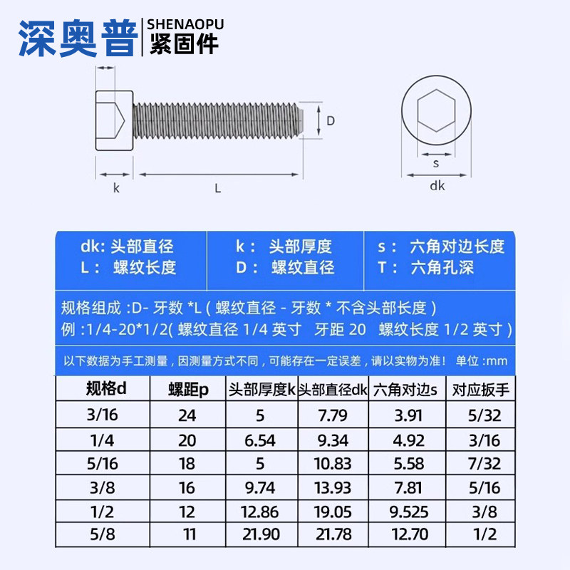 英制12.9级杯头内六角螺丝钉粗牙美制螺栓1/4-20牙5/16-18 3/8-16