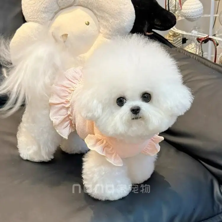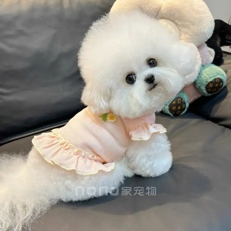 宠物猫咪泰迪可爱透气服比熊狗狗衣服春夏新款华夫格小花飞袖裙子