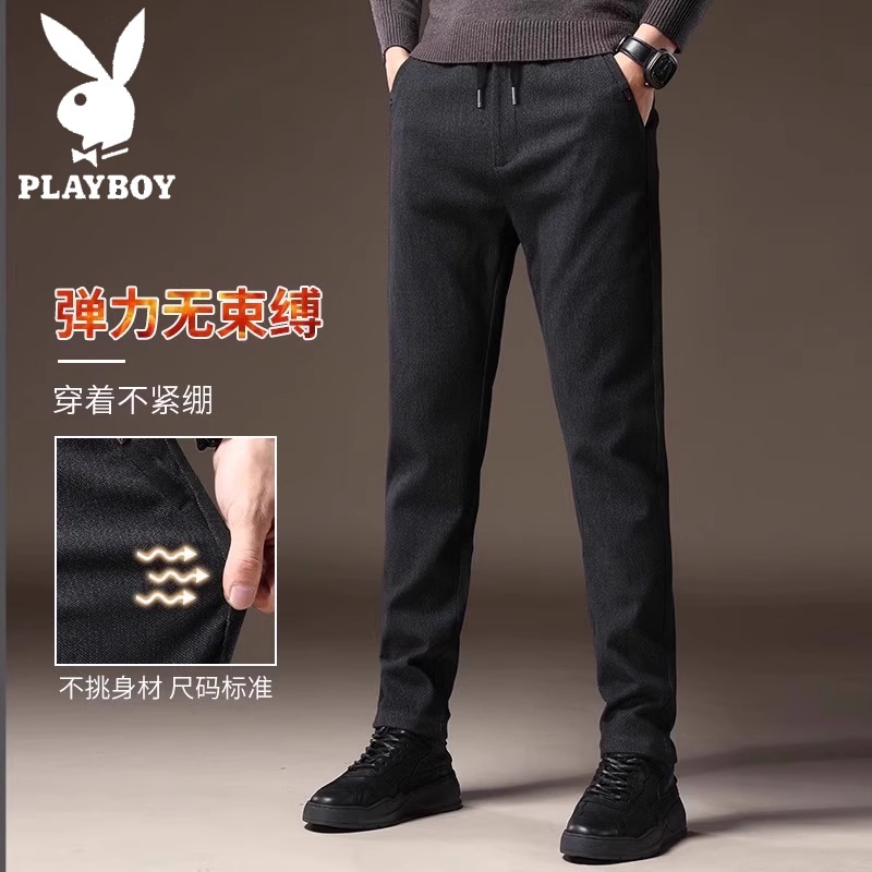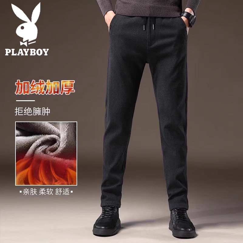 花花公子冬季磨毛休闲裤男士修身直筒潮牌男裤新款加绒加厚长裤子