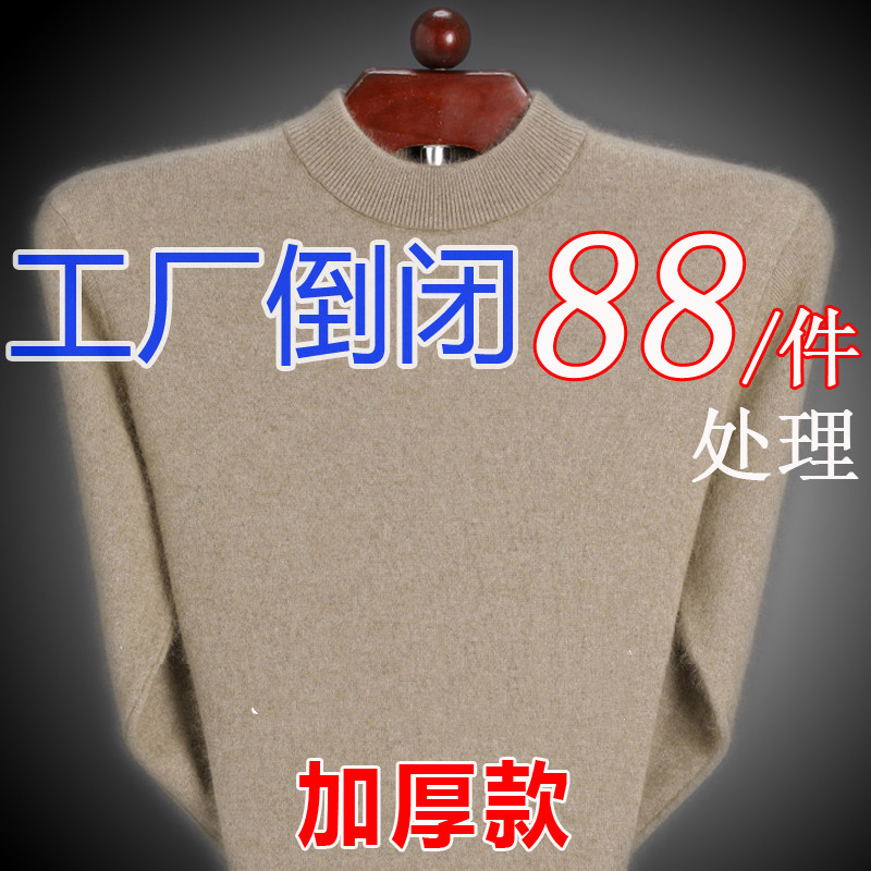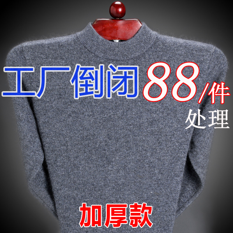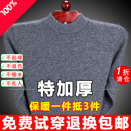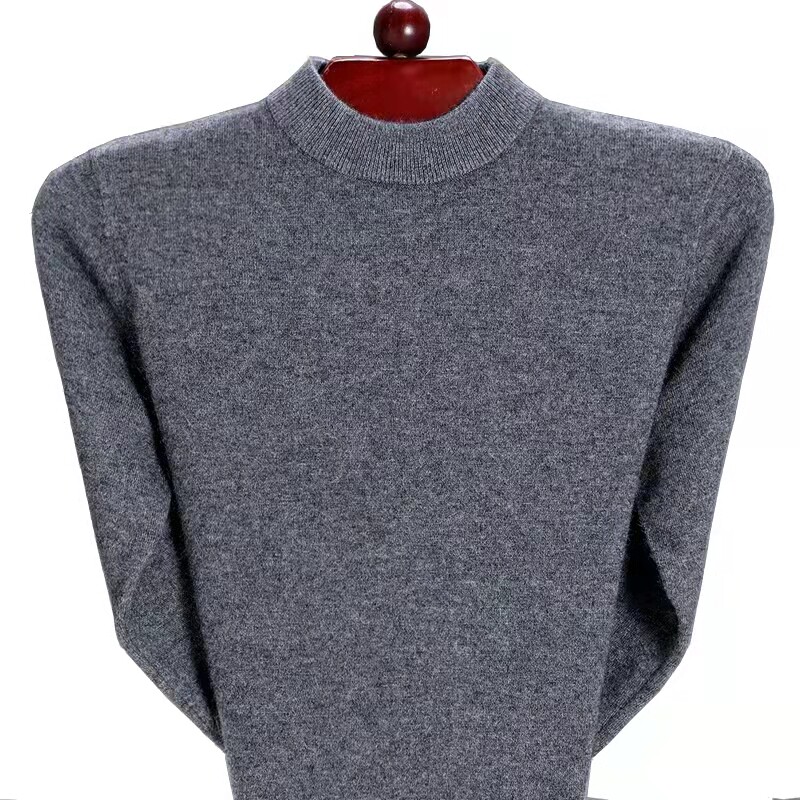 鄂尔多斯市毛衣男冬季加厚纯色绒衫半高领中年爸爸针织打底毛衫