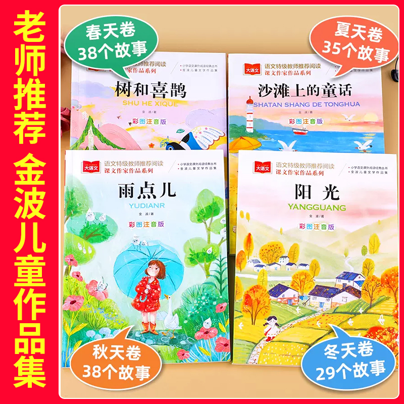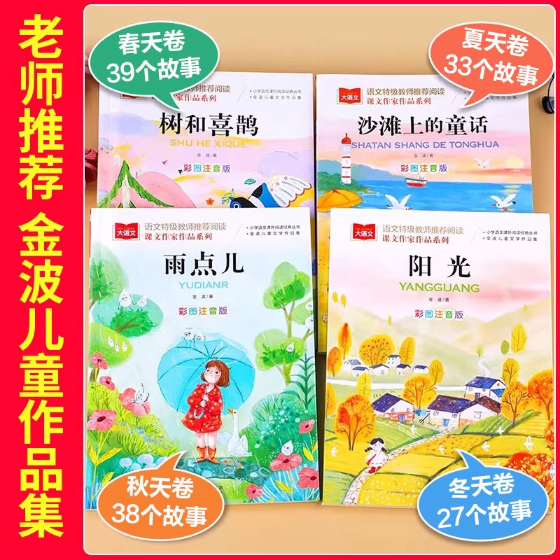 当当正版金波四季美文童话一年级注音版全套4册雨点儿阳光树和喜鹊沙滩上的童话阅读课外书经典书目儿童诗选带拼音的书籍小学语文