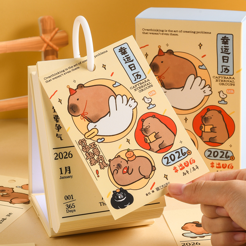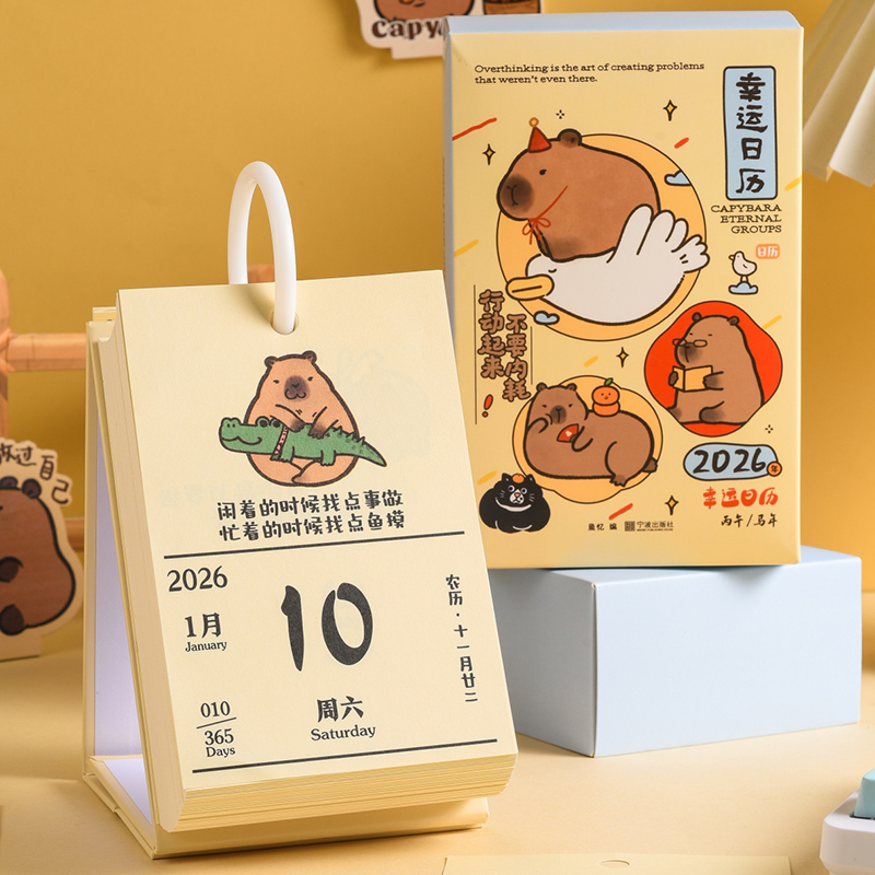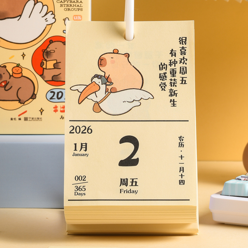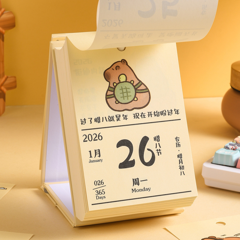卡皮巴拉日历2026年台历计划本卡通趣味打卡手撕单向历高考倒计时提醒牌办公室桌面拒绝内卷2025新款玩坏职场