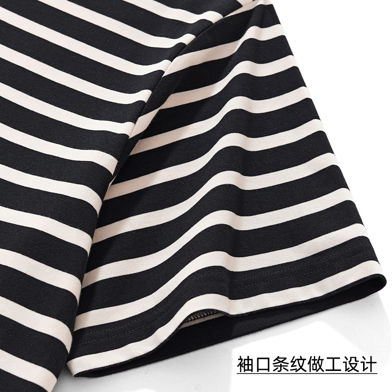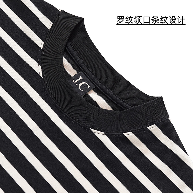 J.C/简裁美式短袖T恤230克小落肩条纹宽松休闲百搭男士半袖新款
