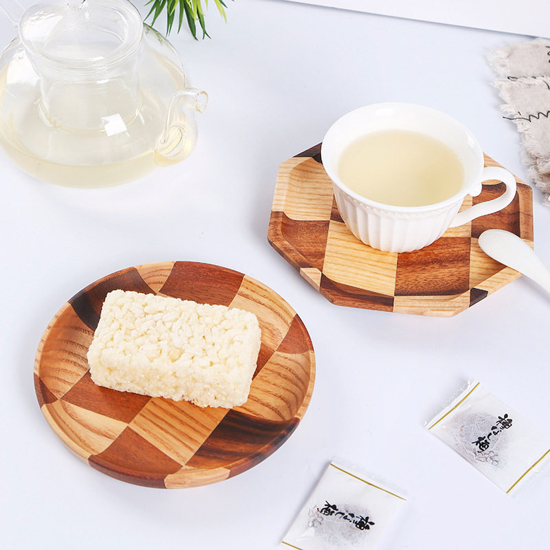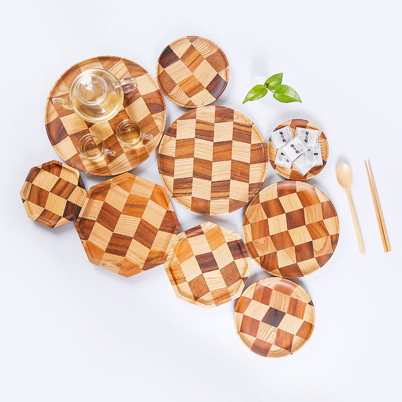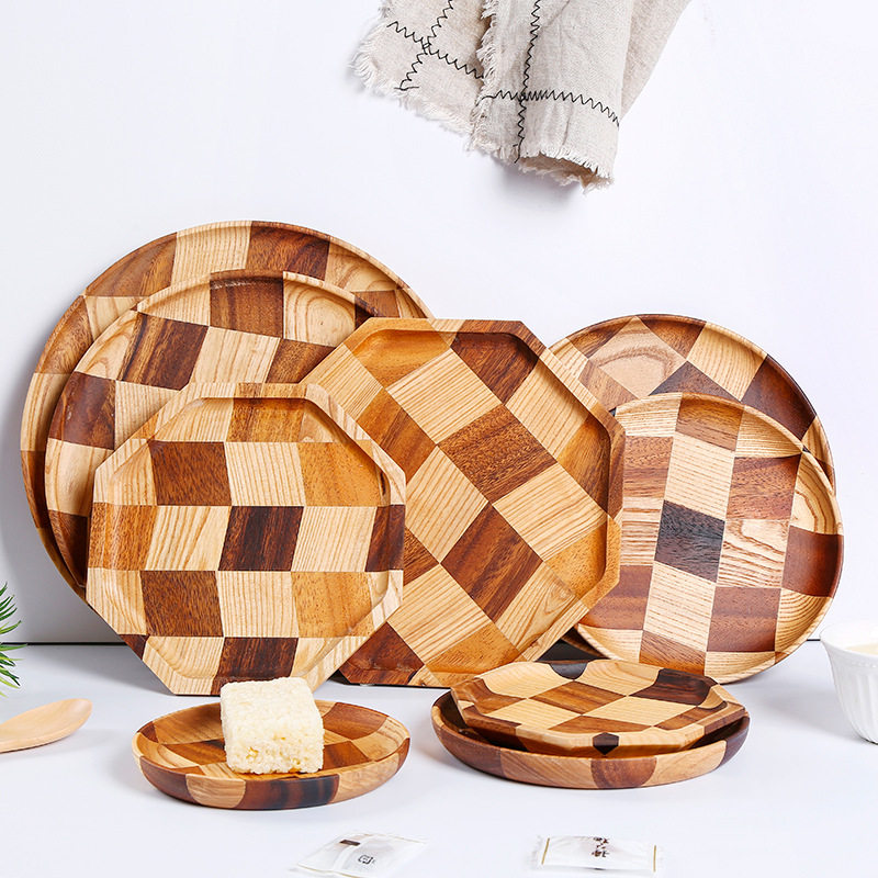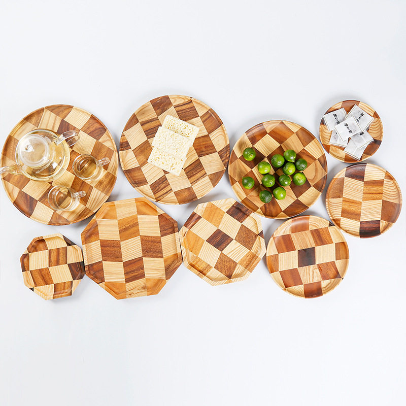 胡桃木拼接白蜡木碟盘酒店托盘木质果盘家用餐盘欧式茶盘