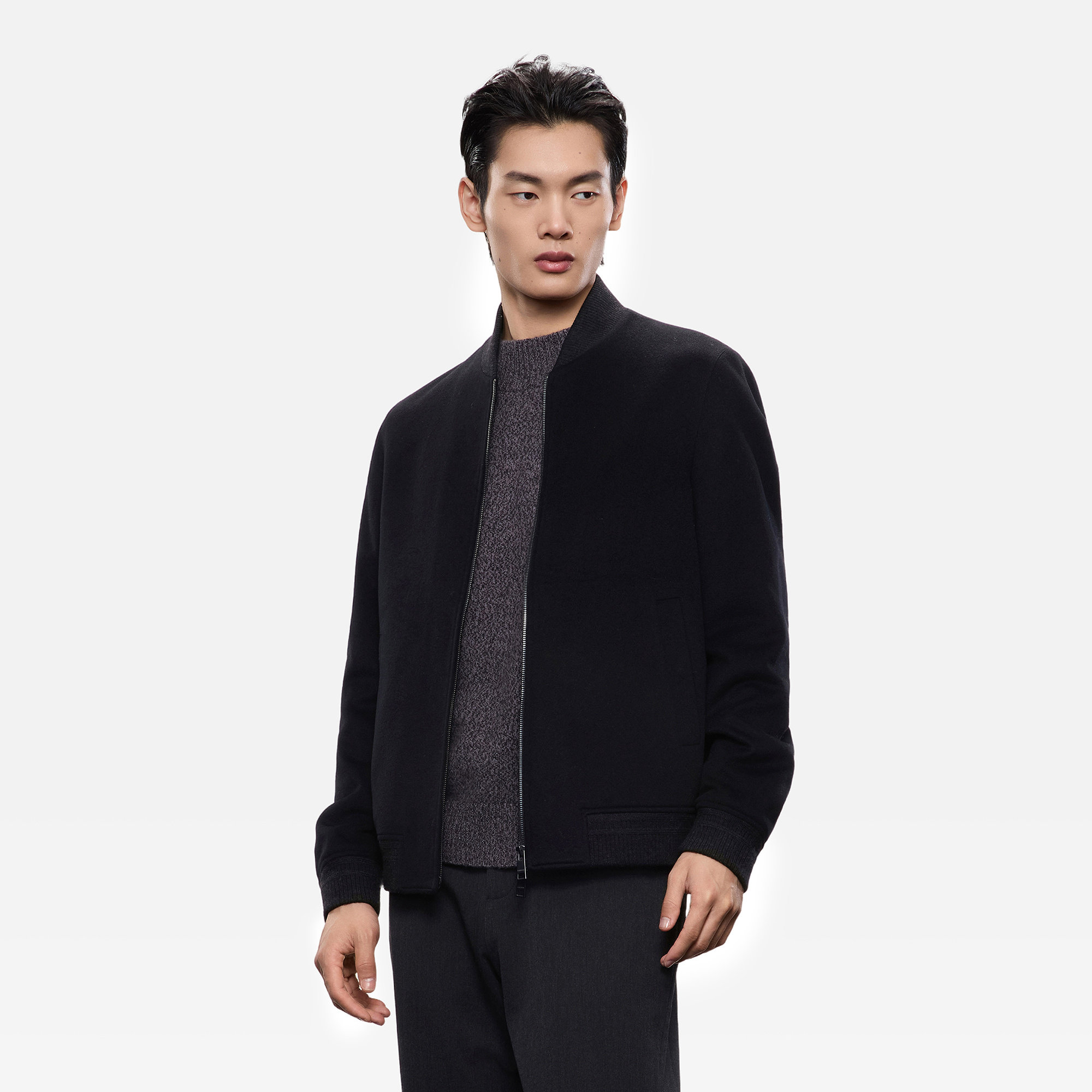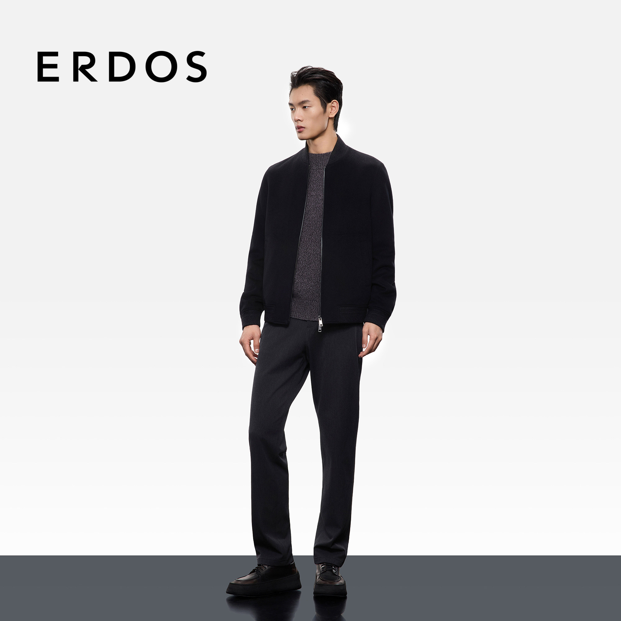 ERDOS 男装棒球领羊绒夹克25年秋冬新品棒球领纯色休闲保暖外套