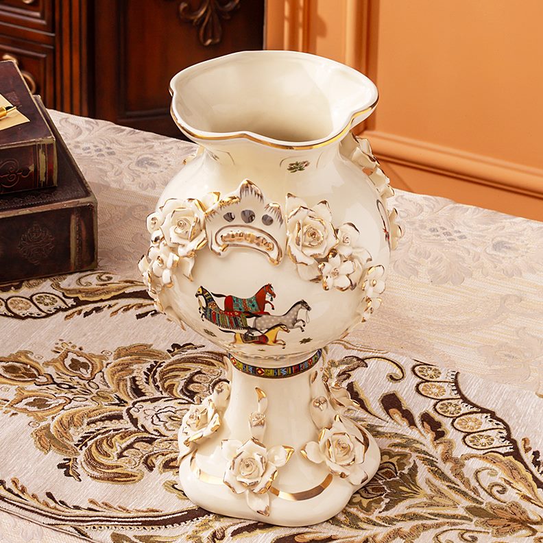 餐厅家用客厅欧式复古奢华花瓶器插花酒店陶瓷电视柜玄关装饰摆件
