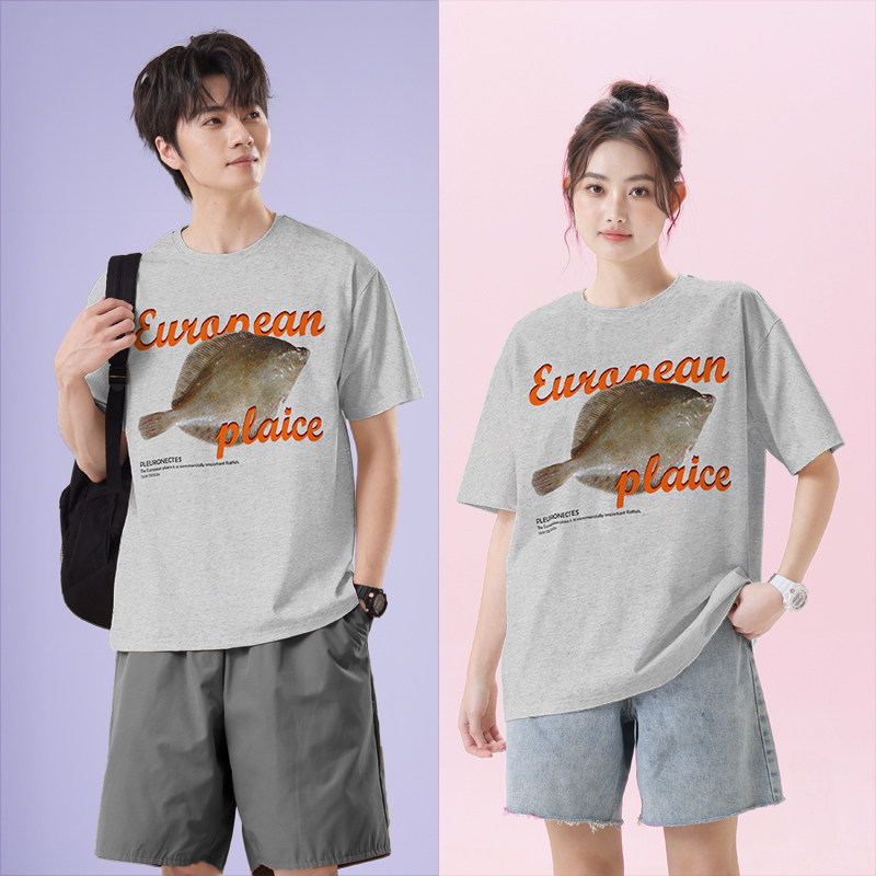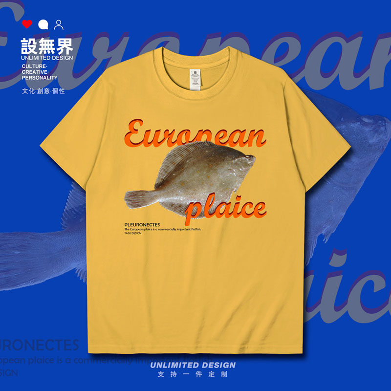 鲽鱼图案鱼类学科短袖T恤男女个性上衣夏宽松新款圆领纯棉设 无界