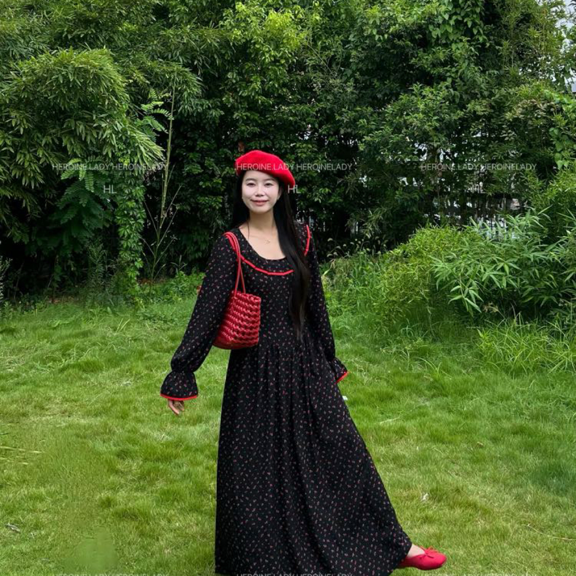 【爱神长袖版】HL雪纺秋季显瘦碎花气质法式宽松公主复古连衣裙
