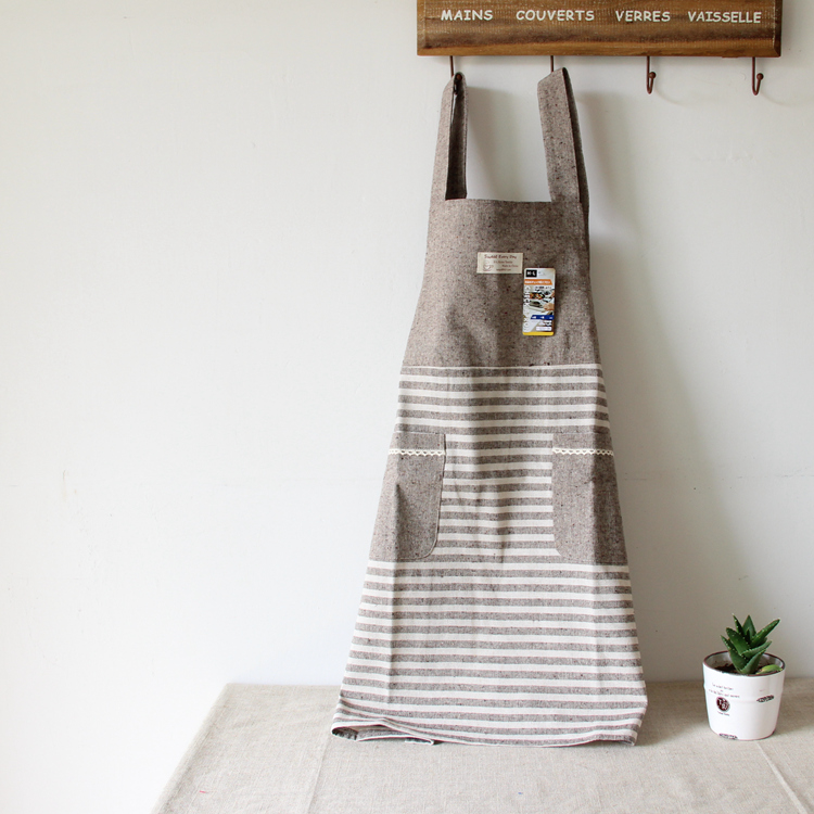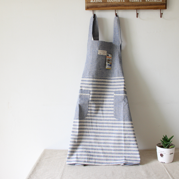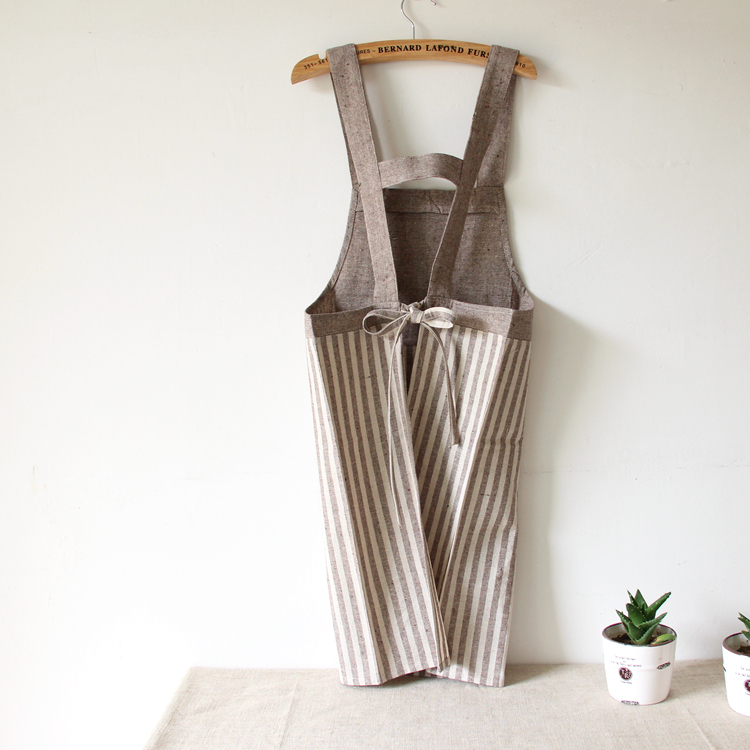粗棉麻布料围裙包邮家用厨房防油污水男女条纹背带大兜袖套装定制
