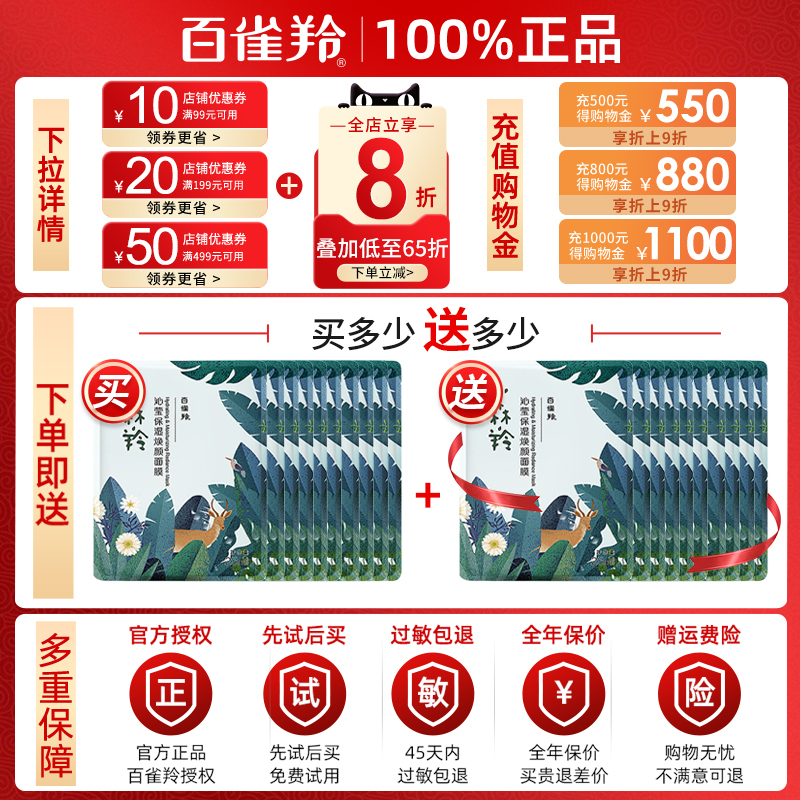 百雀羚面膜小森羚女补水保湿收缩毛孔免洗滋润贴片官方旗舰店正品