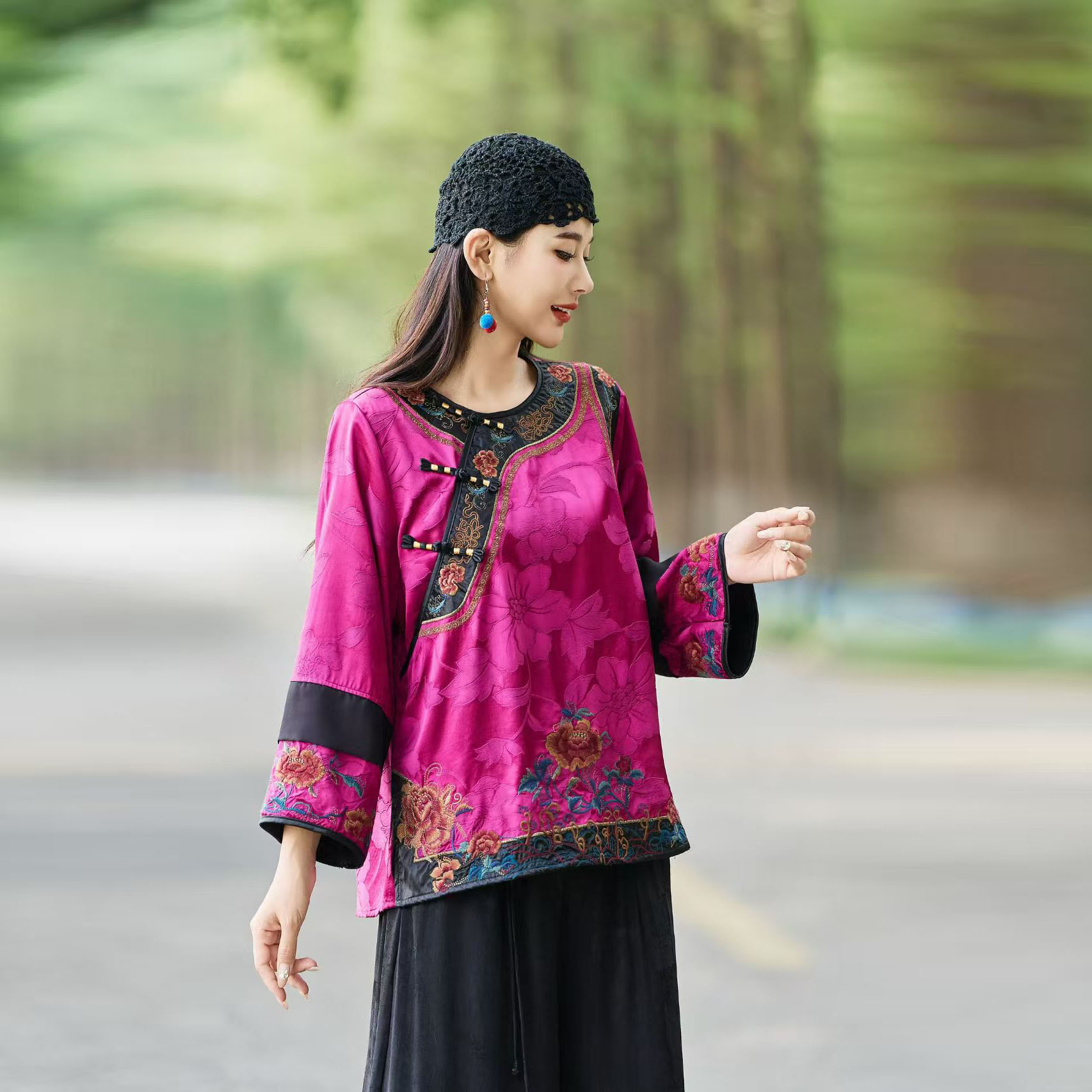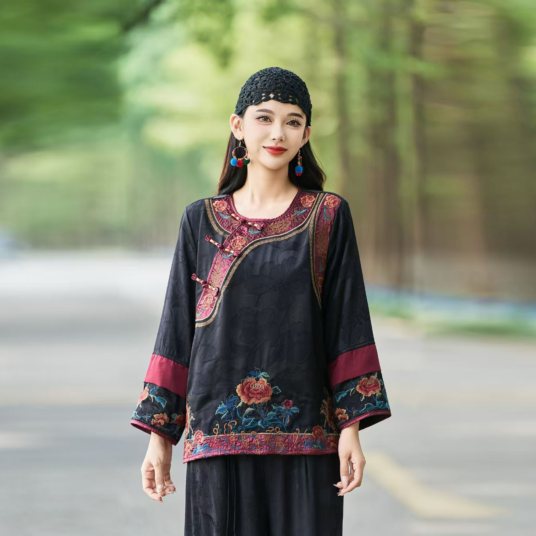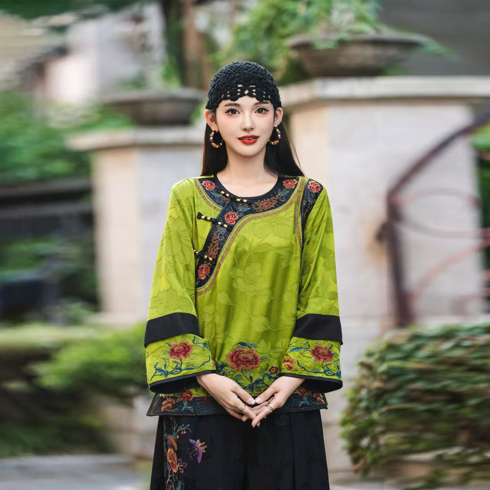 新中式国风服装2025秋季新款斜襟重工刺绣复古民族风宽松长袖上衣