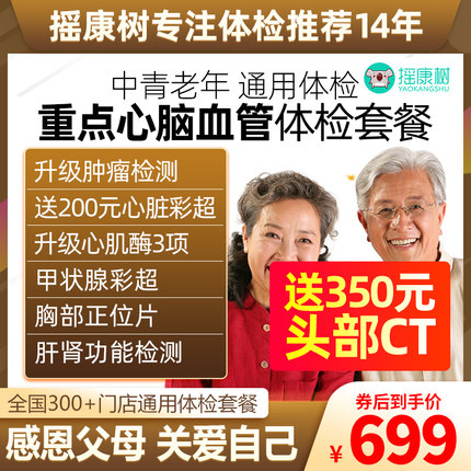 美年大健康重点心脑血管体检套餐头部CT心脏彩超心肌酶等全国通用