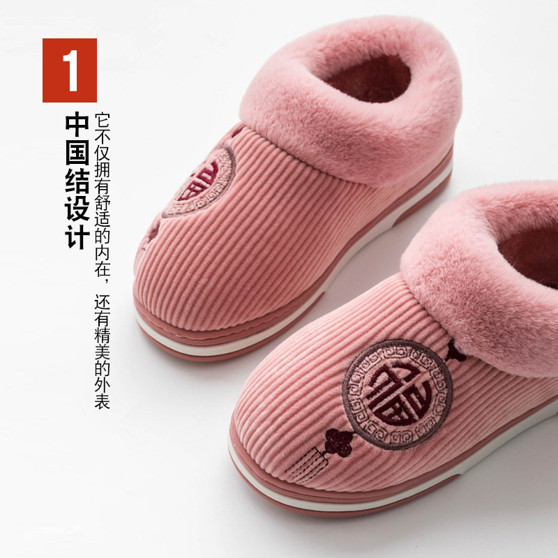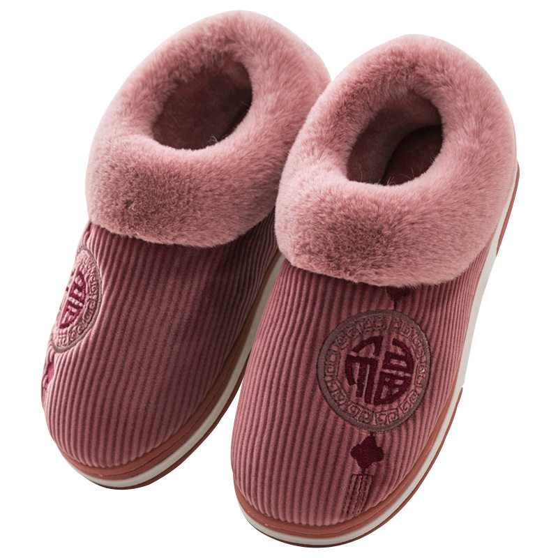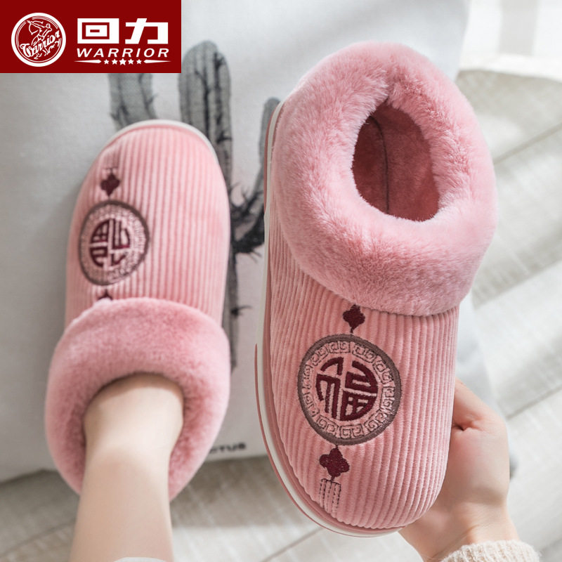回力室内家居保暖棉拖男士家用防滑外穿棉拖鞋女厚底包跟毛毛拖鞋
