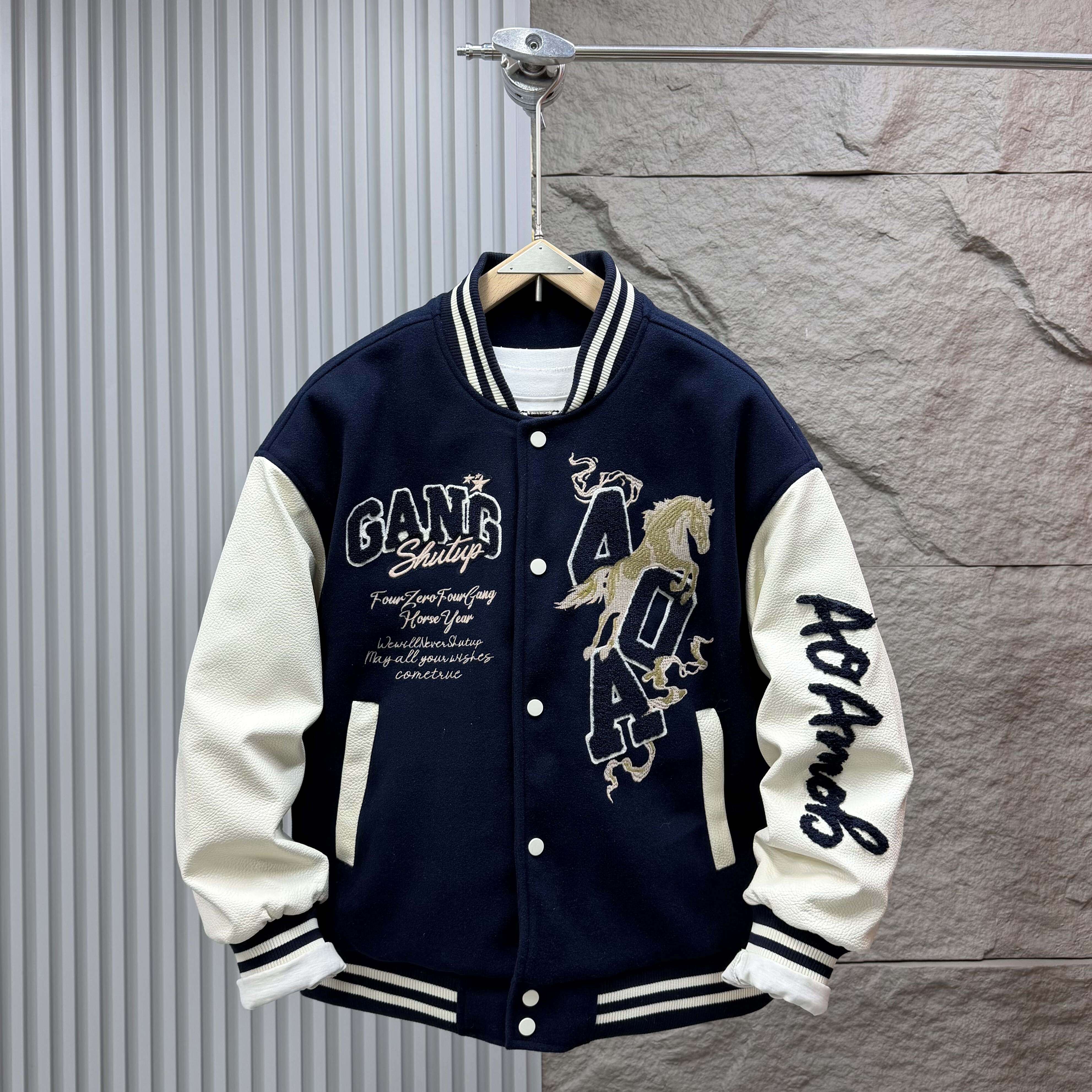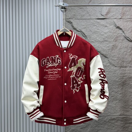 2026本命年红刺绣美式棒球棉衣