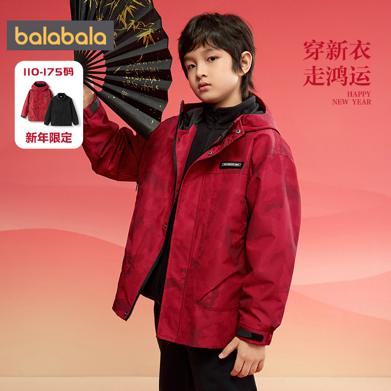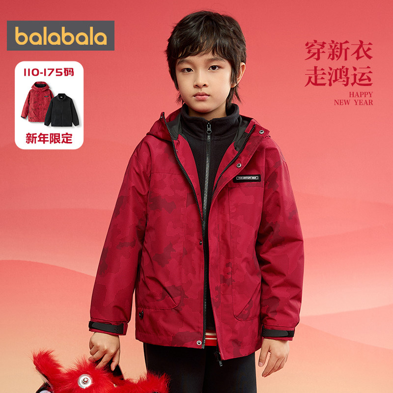 巴拉巴拉男童外套儿童春装2025新款童装中大童宝宝红色三合一上衣