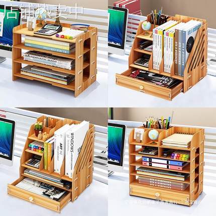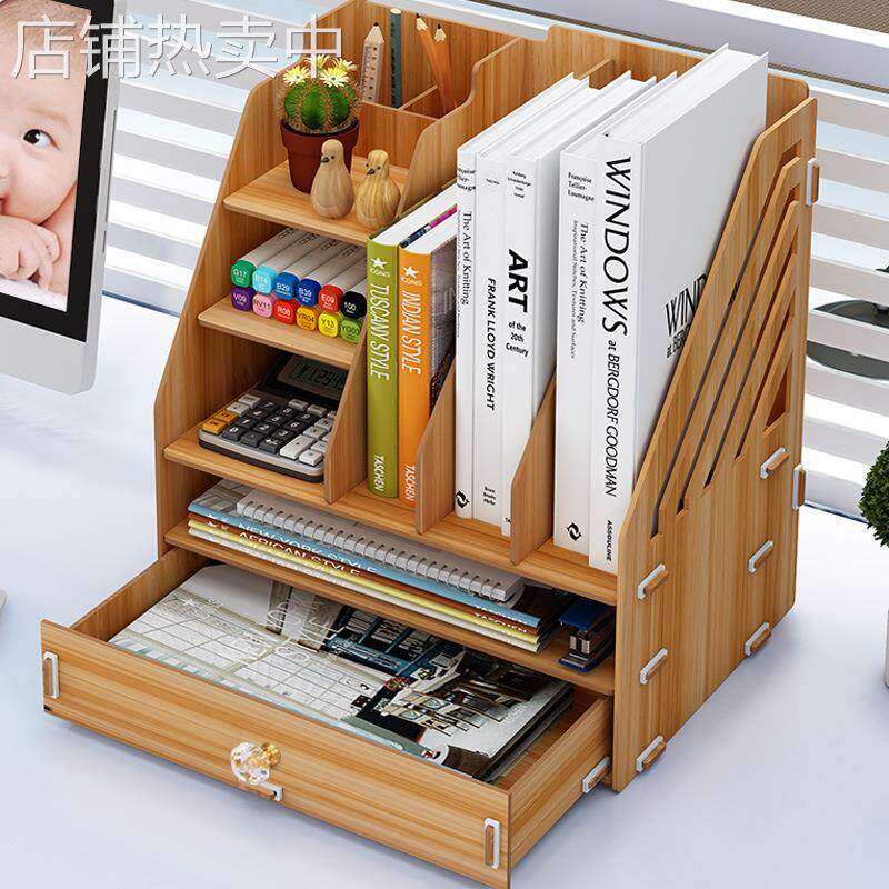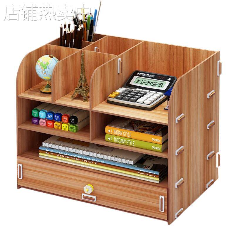 办公桌面收纳盒用品大号多层抽屉文件夹文具室木质储物书桌置物架