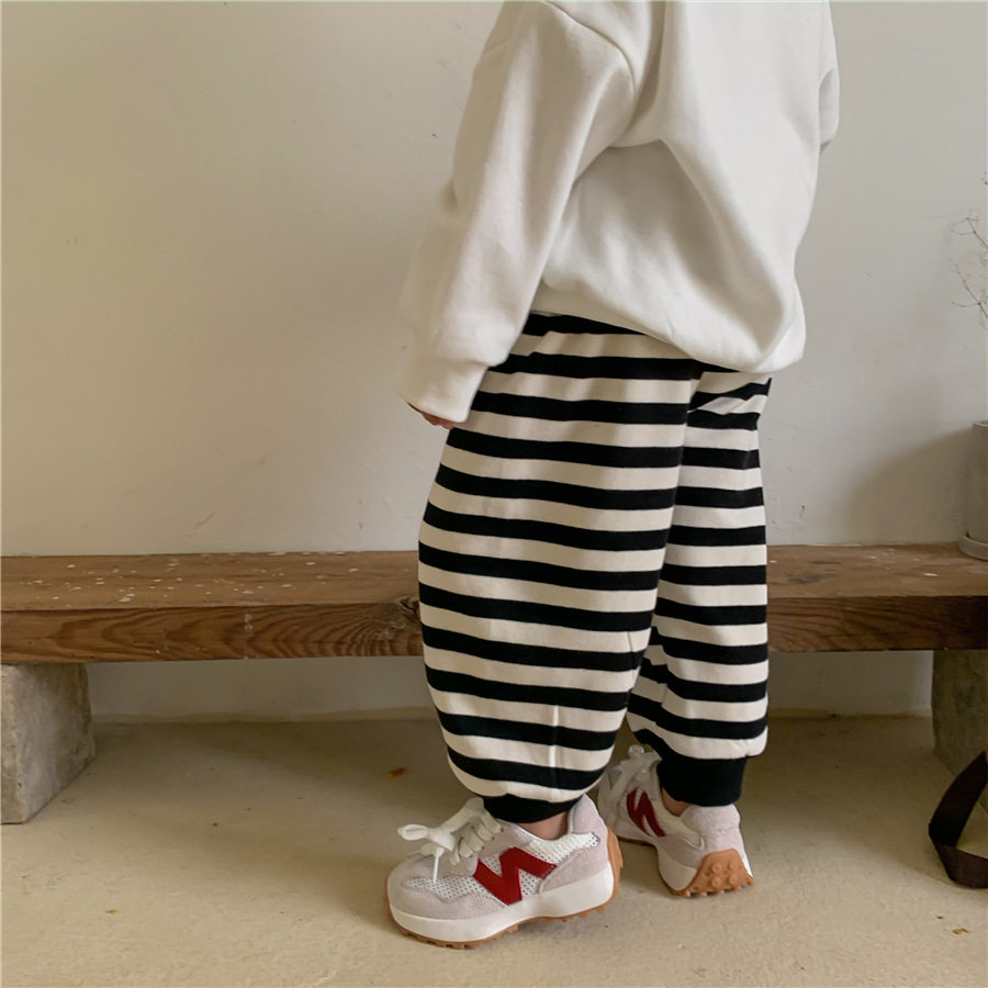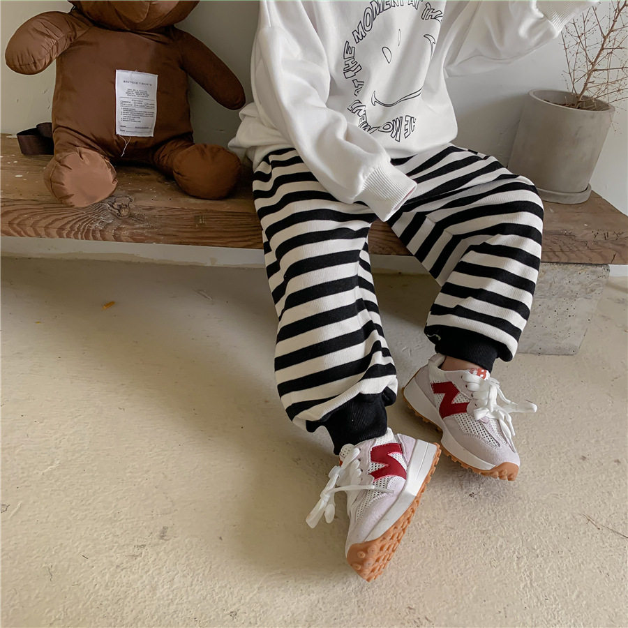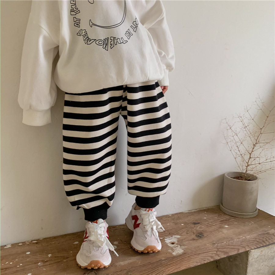 儿童纯棉运动针织裤男女童休闲宽松条纹卫裤收脚口春秋宝宝休闲裤