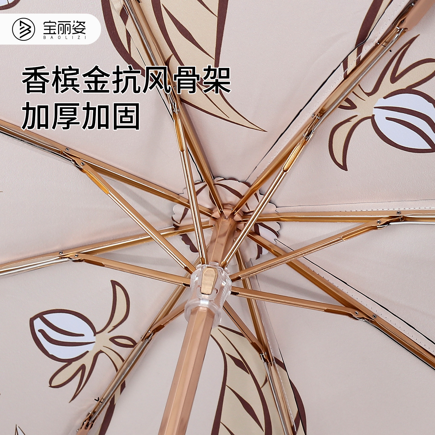 宝丽姿金杆双层黑胶防晒遮阳伞女三折叠雨伞两用超强防紫外太阳伞