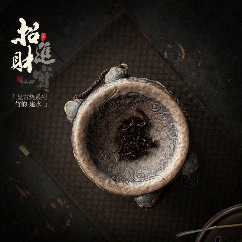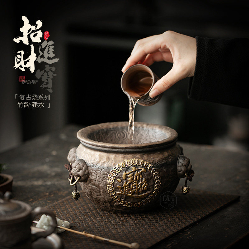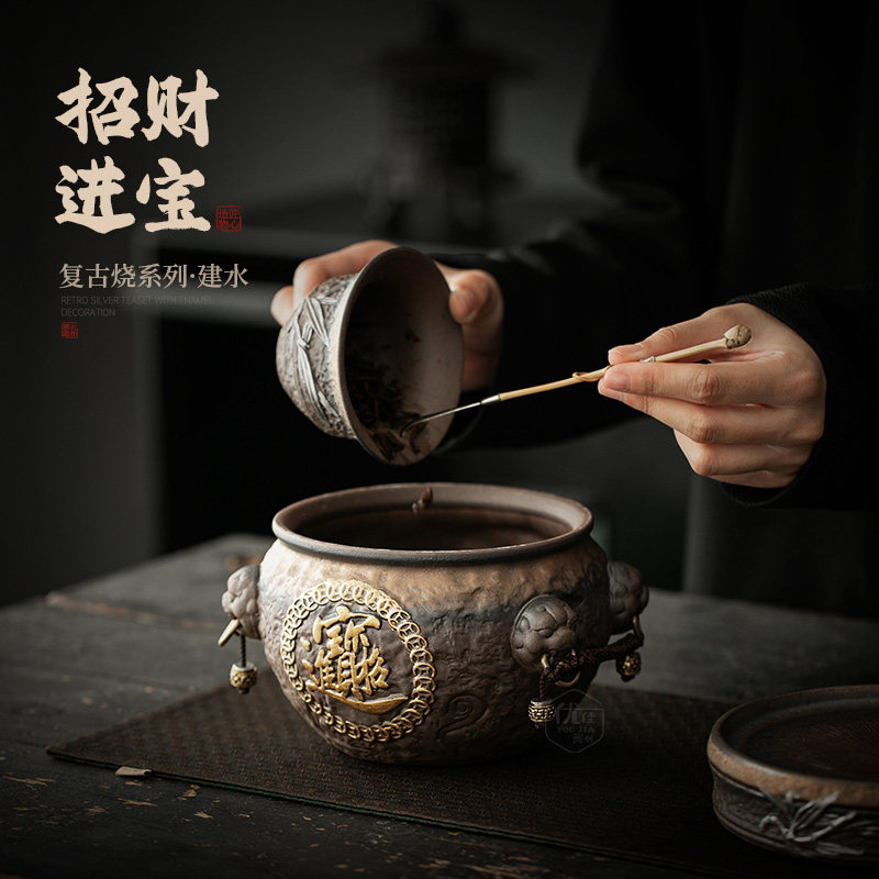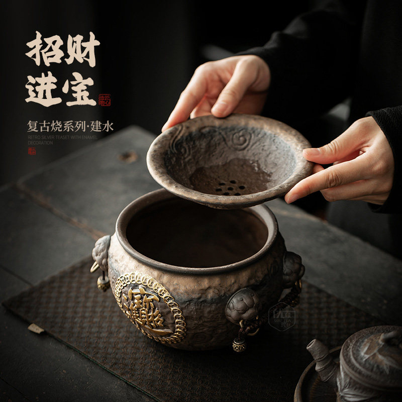 粗陶鎏金建水茶渣缸水盂中式复古废水缸茶盂茶洗功夫茶具茶道零配
