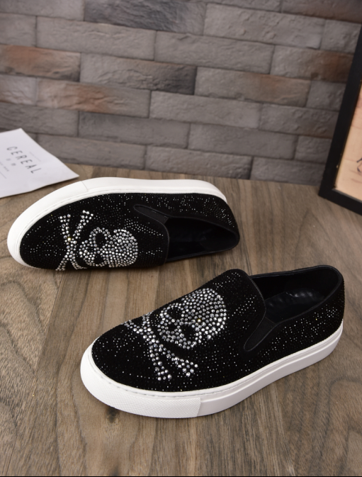 新款欧美个性百搭休闲鞋套脚真皮运动板鞋烫钻一脚蹬懒人乐福鞋