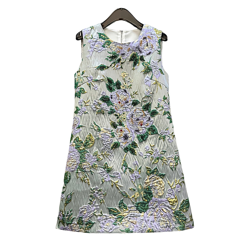 浮雕提花重工钉珠烫金刺绣背心裙夏季新款女装高级感轻奢a字裙子