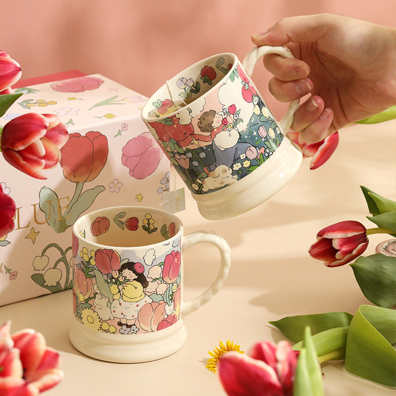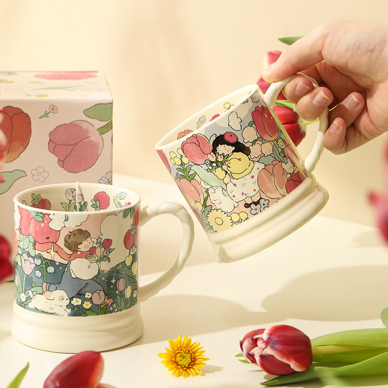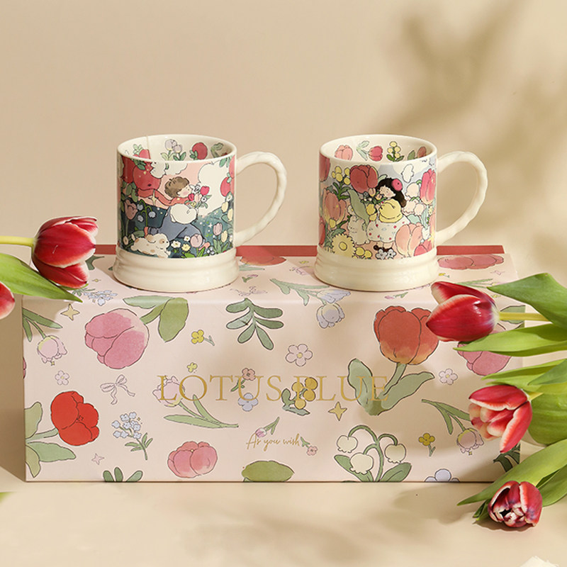 蓝莲花家居马克杯礼盒情侣款网红