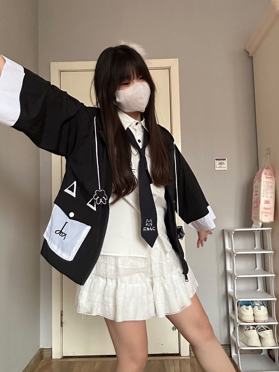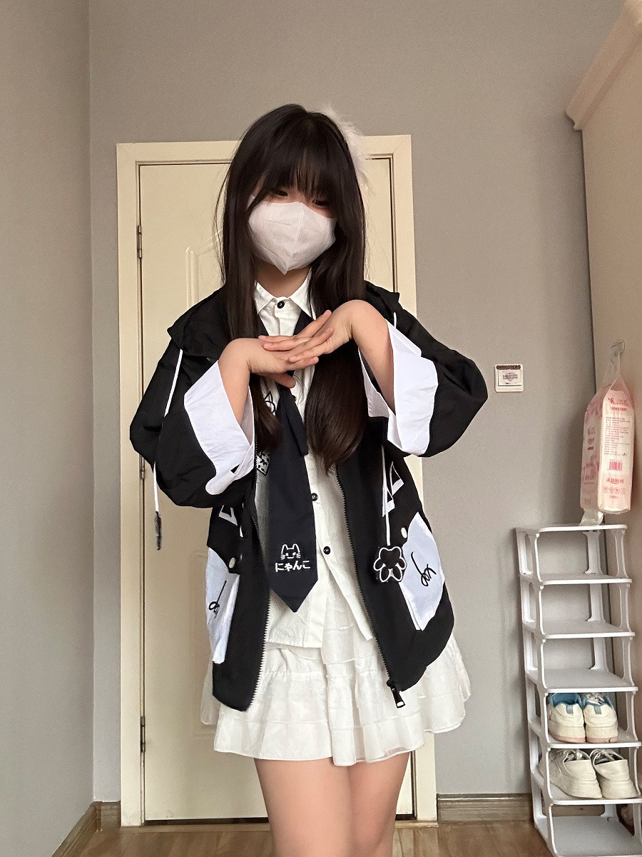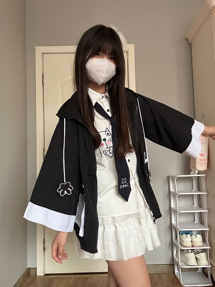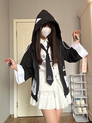 爆二次元男女同款可爱抽象狐狸超薄开衫外套fox连帽七分袖防晒衣