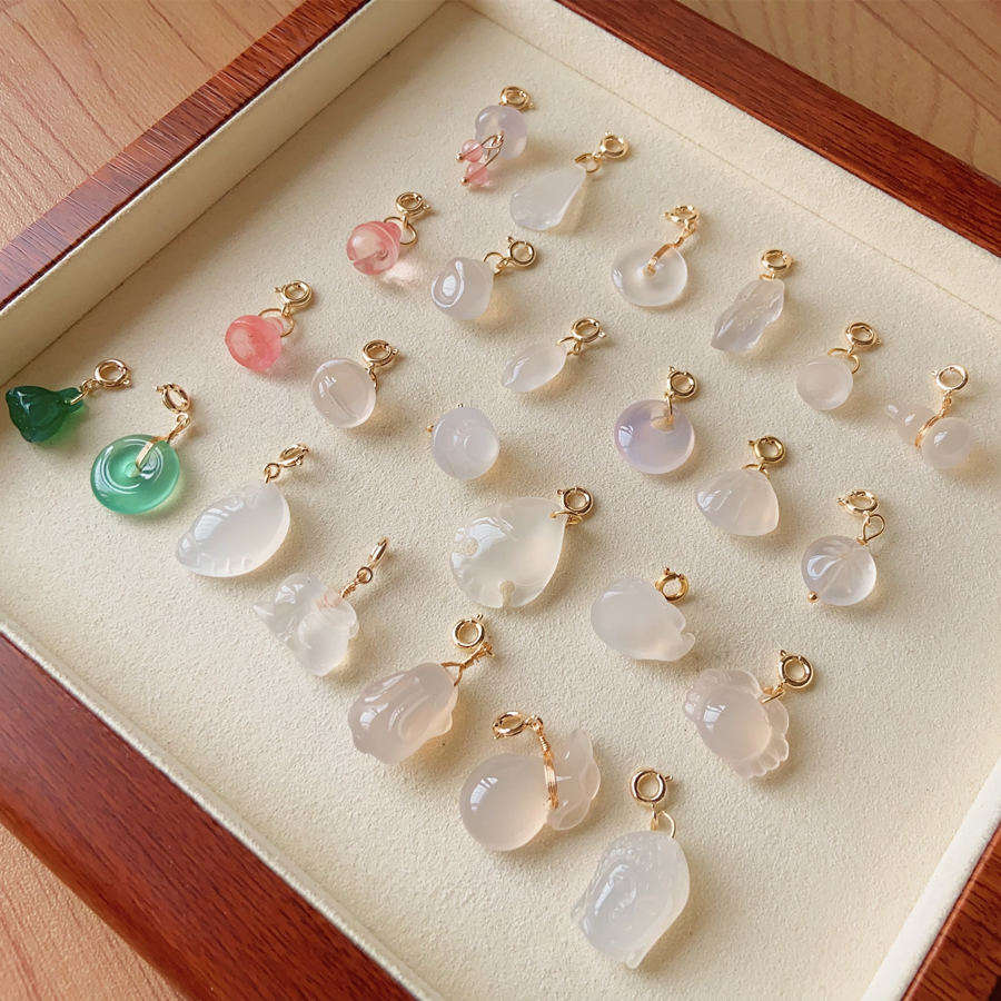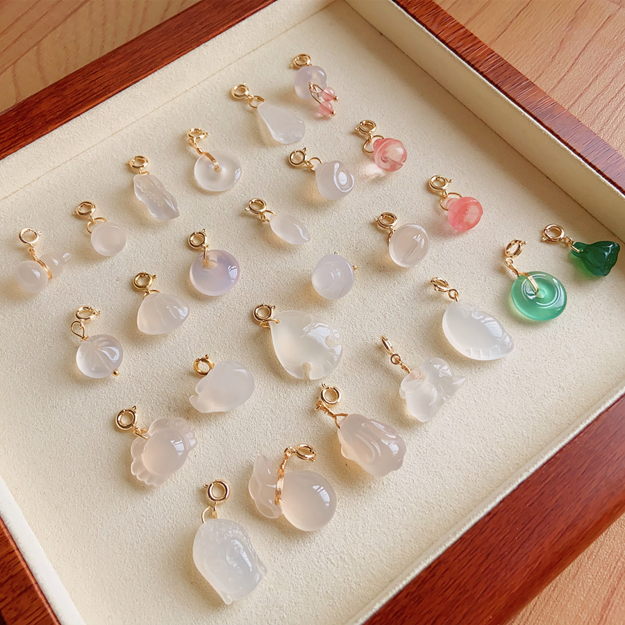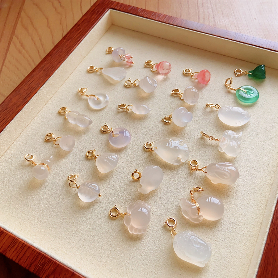 天然玛瑙玉髓清新多宝小吊坠生肖莲蓬小兔子猫爪可爱小提溜可拆卸