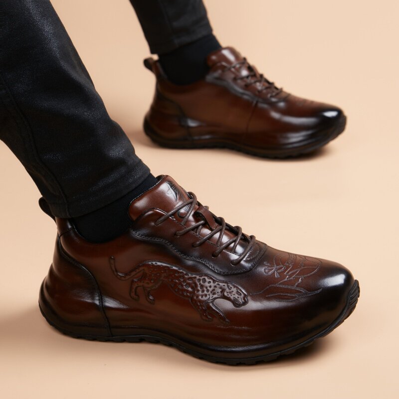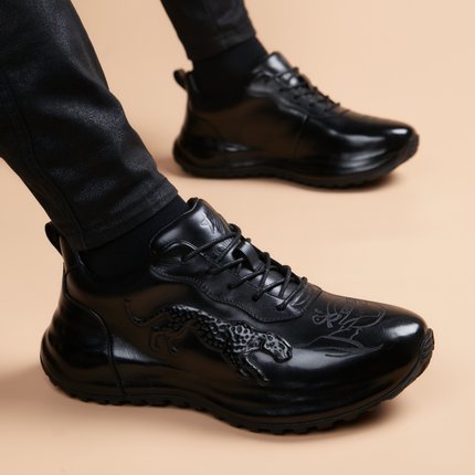 轻奢真皮手工男鞋新款固特异皮包底男潮鞋头层牛皮内增高休闲皮鞋