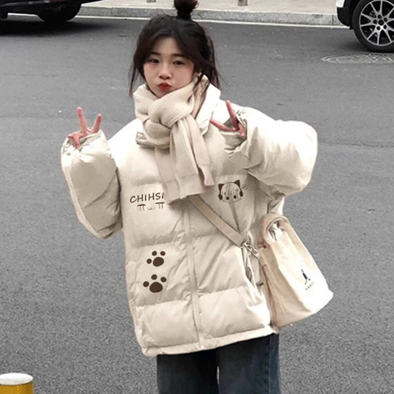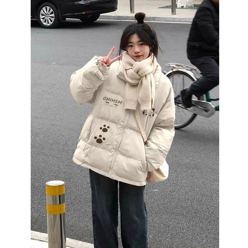 米白色学生甜妹90白鸭绒羽绒服女冬宽松小个子街头设计感加厚外套