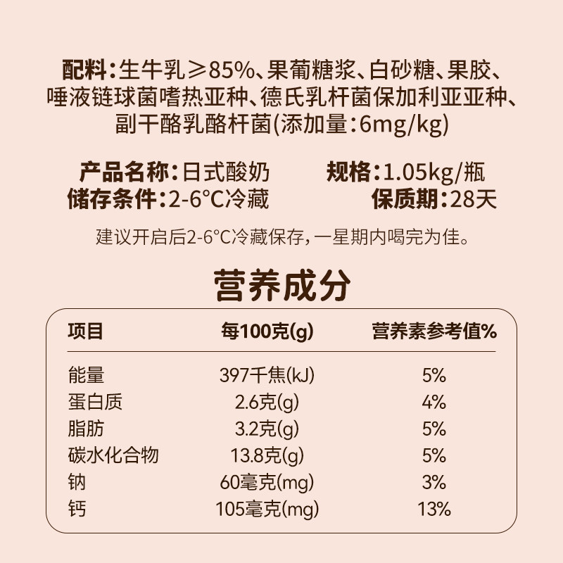 和润日式酸奶大瓶装低温酸奶益生菌酸牛奶褐色炭烧酸奶1.05kg