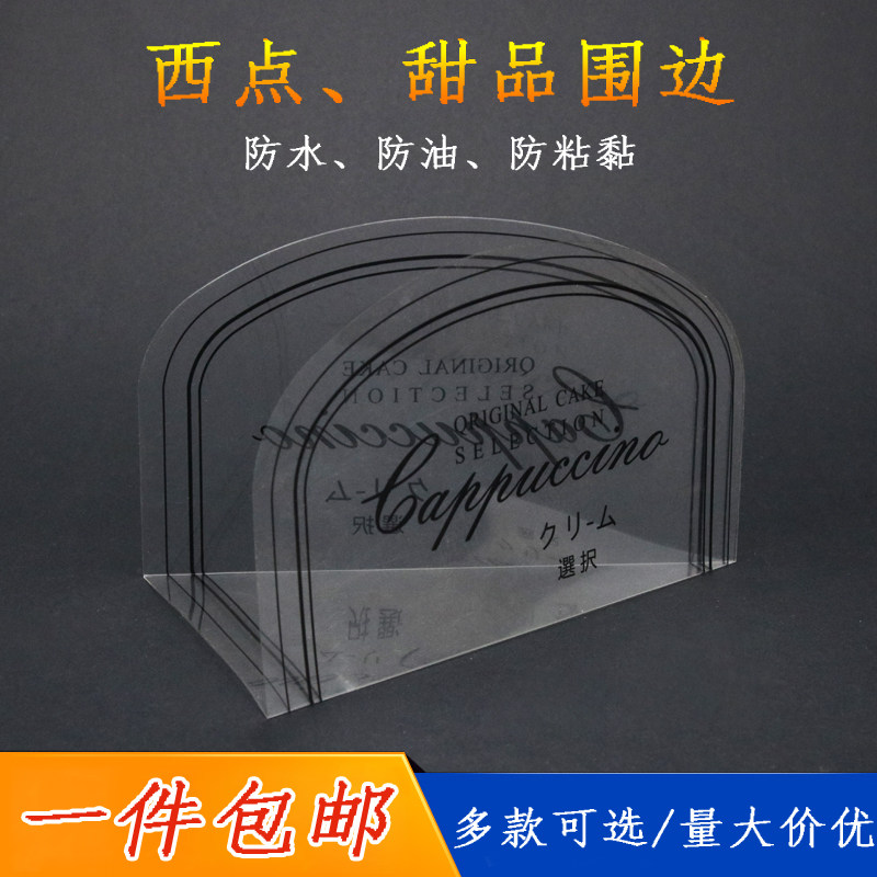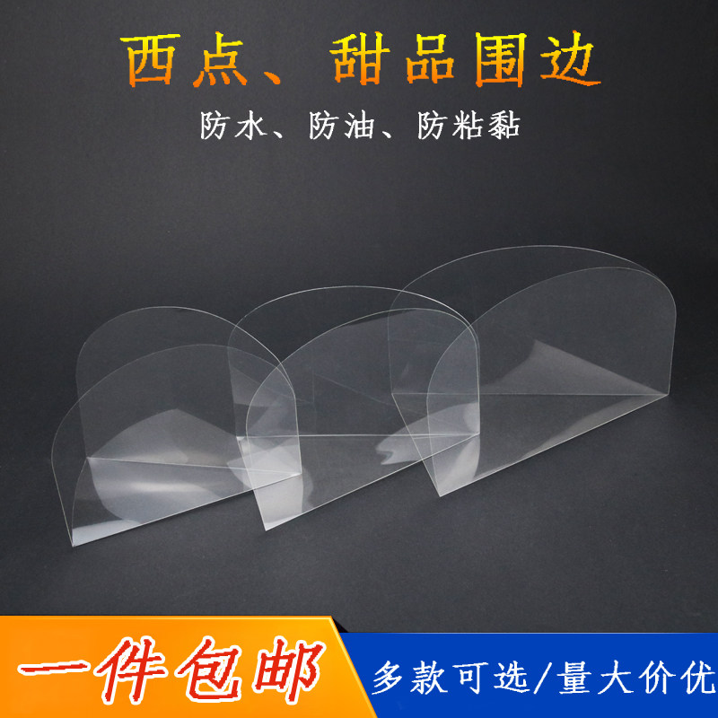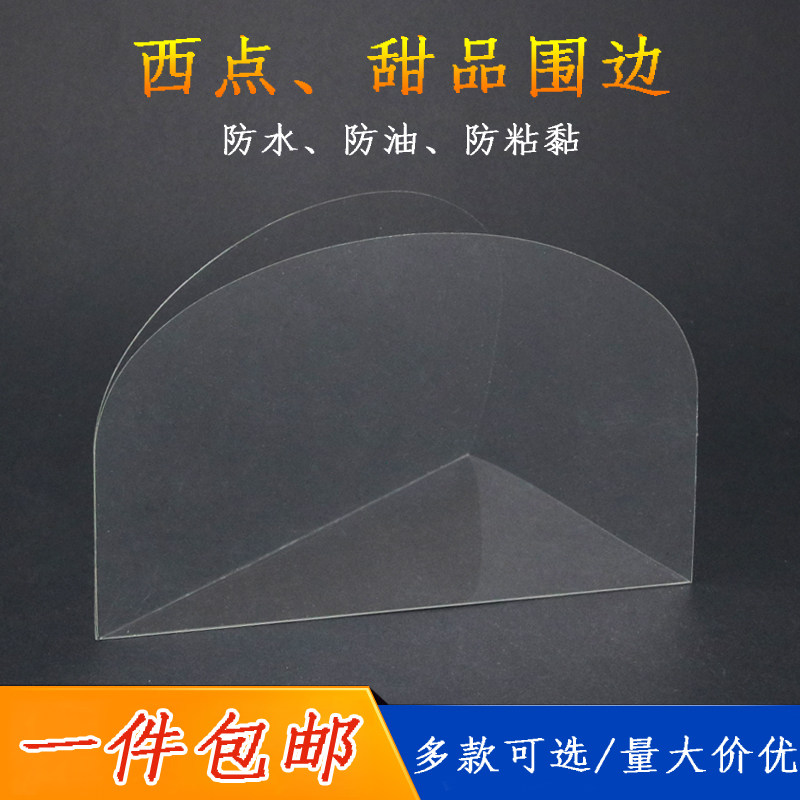 透明底托切块慕斯蛋糕垫瑞士卷小西点三角一体硬围边烘焙包装装饰