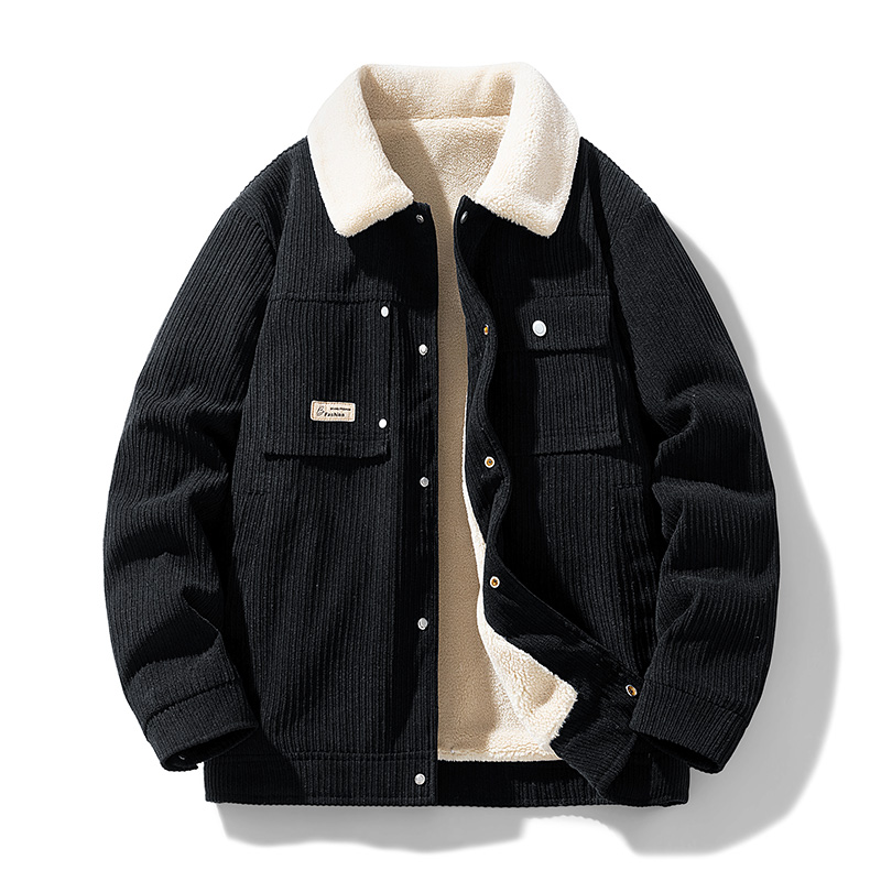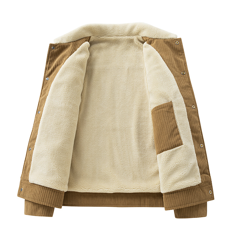 以纯灯芯绒夹克羊羔绒棉衣服男款