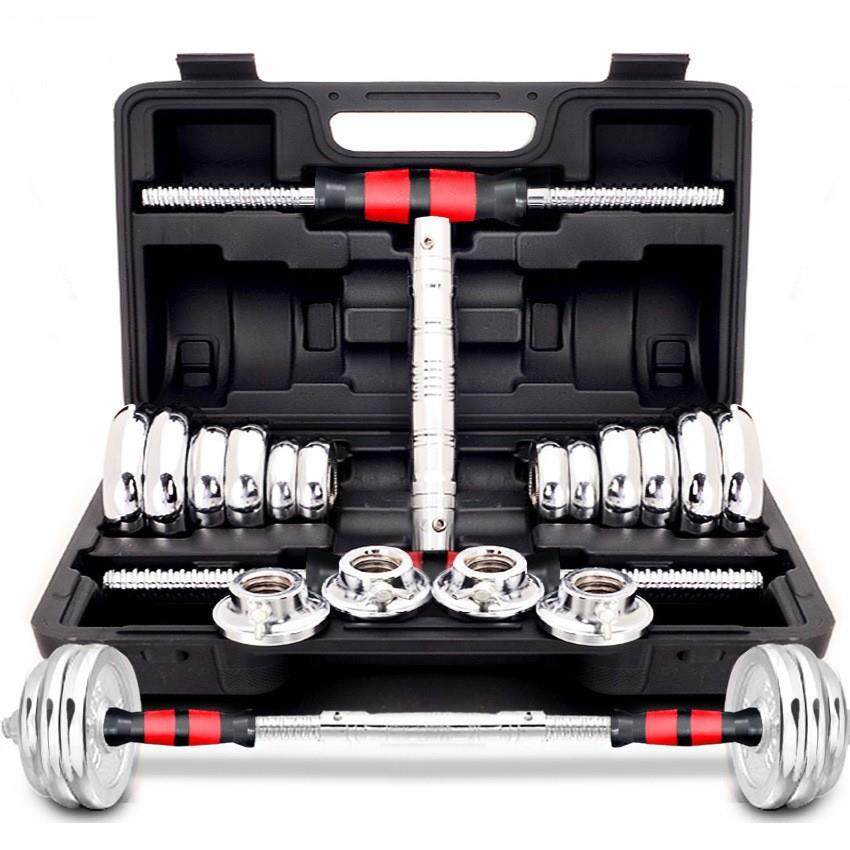 哑铃可拆卸调节重量电镀盒装两用实心铁举重男女家用健身器材杠铃