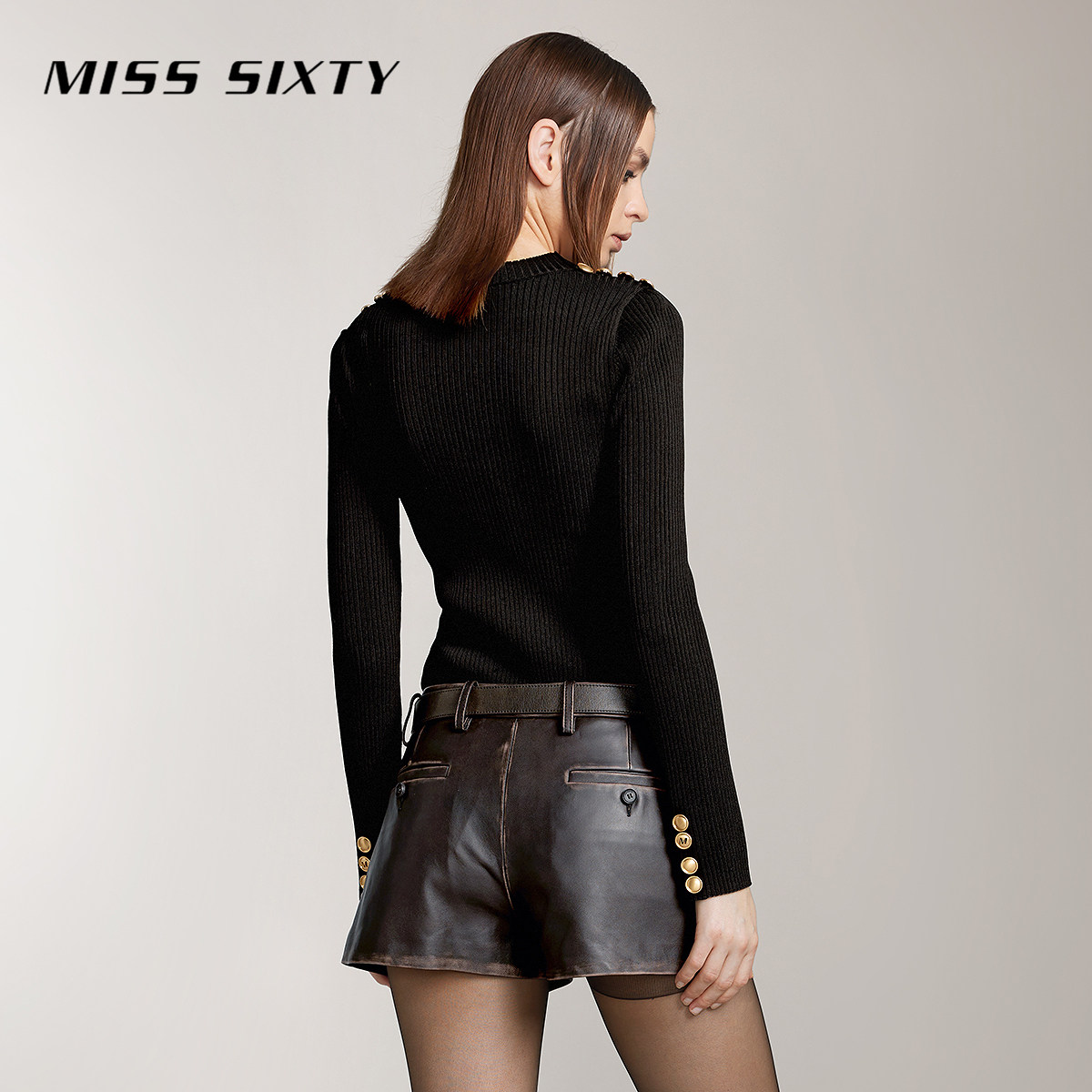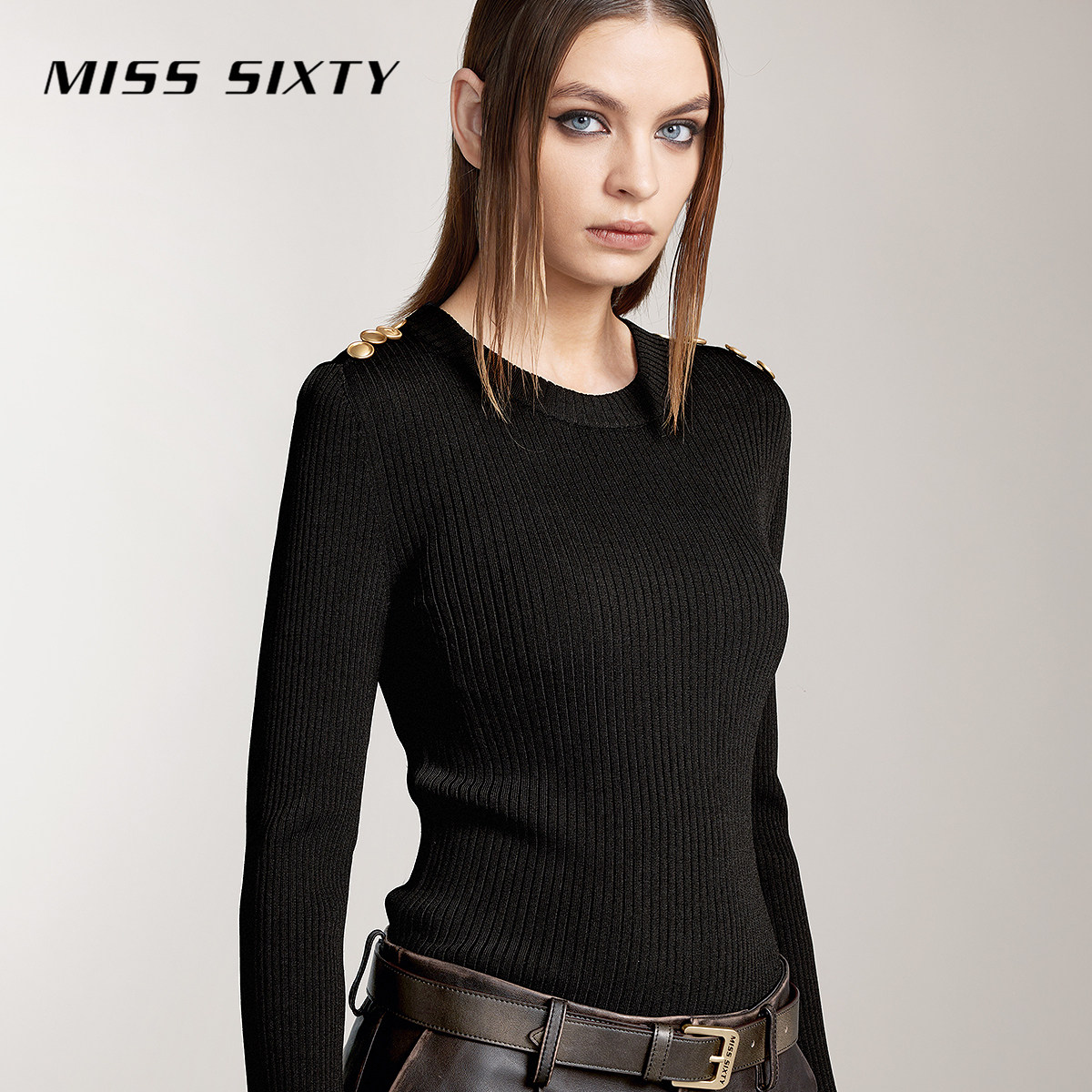 Miss Sixty针织衫女圆领复古纽扣修身短款气质含桑蚕丝上衣毛衣