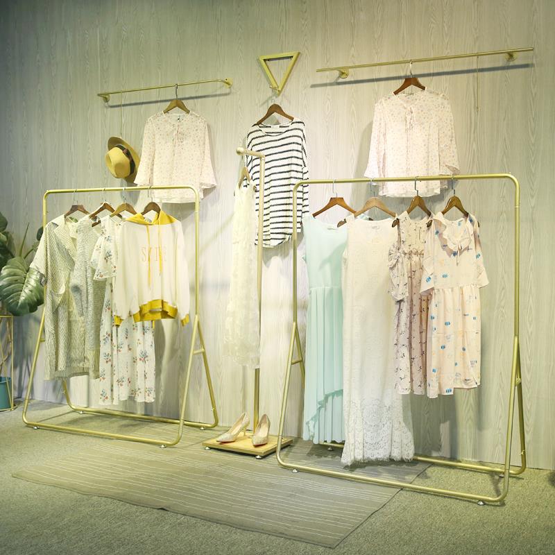 金色服装店展示架衣服上墙服装架女装店装修货架壁挂式细管衣服架