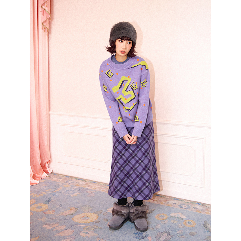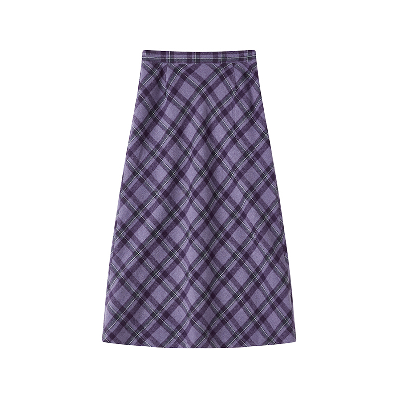 化学少女 「白昼梦游」复古紫格斜裁哲学裙优雅短毛呢A字半身裙