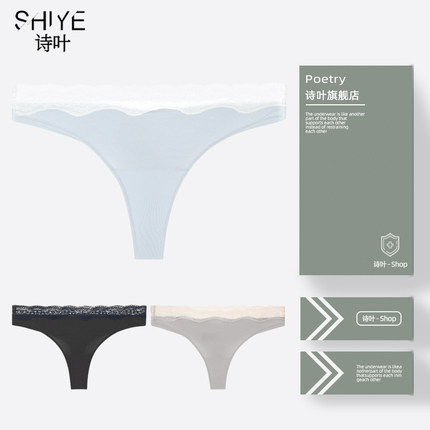诗叶舒适莫代尔棉蕾丝边性感火辣丁字裤T裤女低腰透气内裤