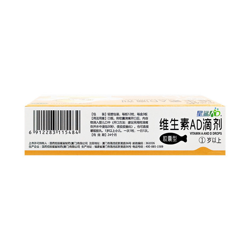 【星鲨】维生素AD滴剂(胶囊型)2000IU:700U*36粒/盒夜盲症佝偻病夜盲补充抽搐