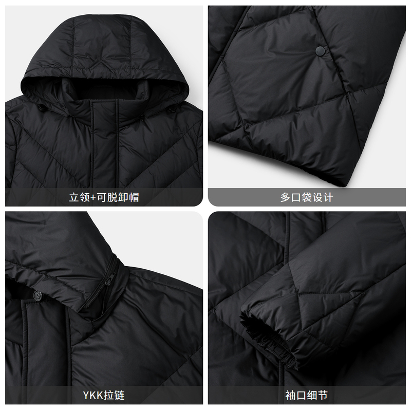 【抑菌白鹅绒】金利来2025秋冬新款男士绗缝连帽保暖短羽绒服外套