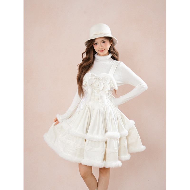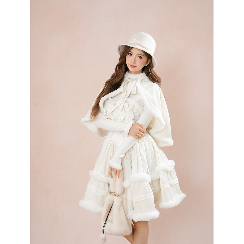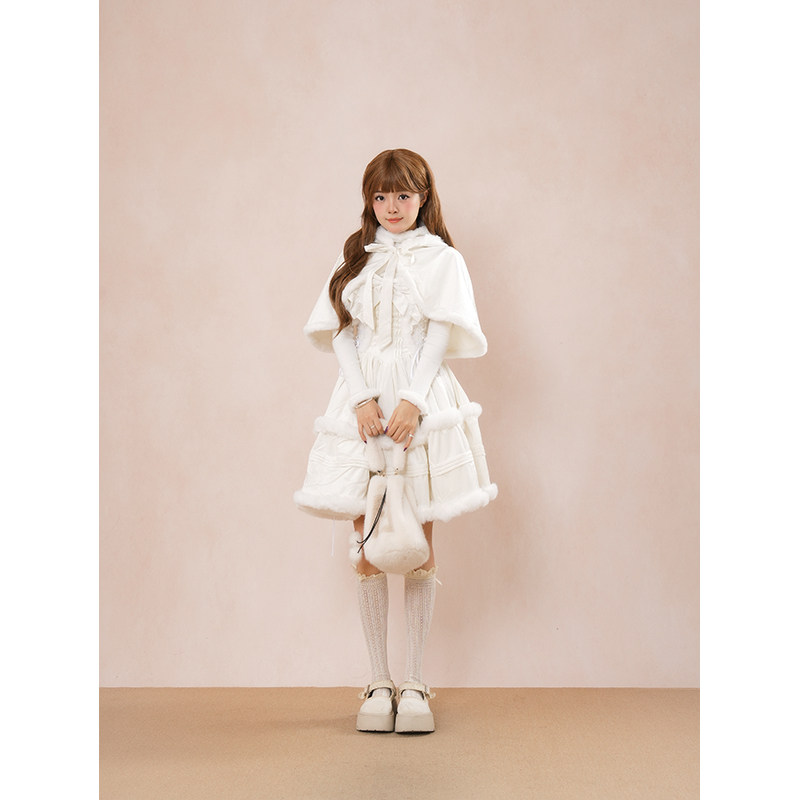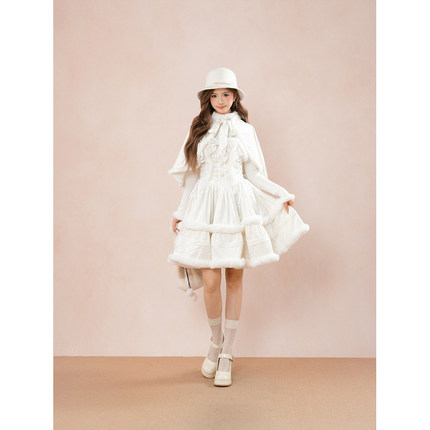 冬日巡礼 日系甜美可爱学院风蝴蝶结披肩lolita设计感连衣裙套装