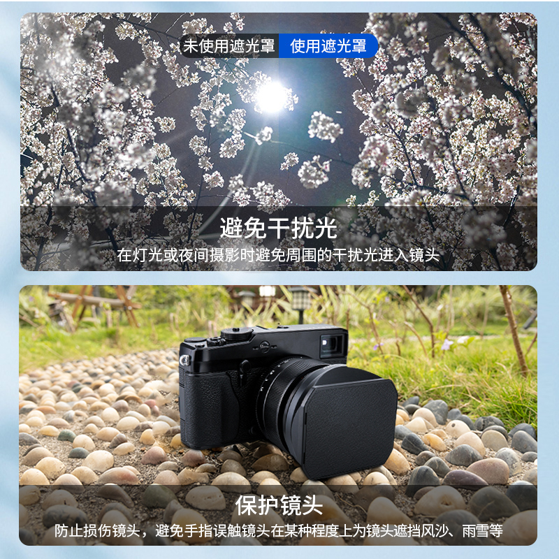 JJC 适用富士XF 16mm f1.4镜头 LH-XF16遮光罩 相机XT30 XT4 XS10 XT30 XE4 镜头配件 金属广角方形配件67mm
