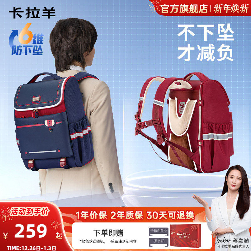 卡拉羊1-4-6年级小学生减负大嘴书包防下坠大容量女双肩包男新款