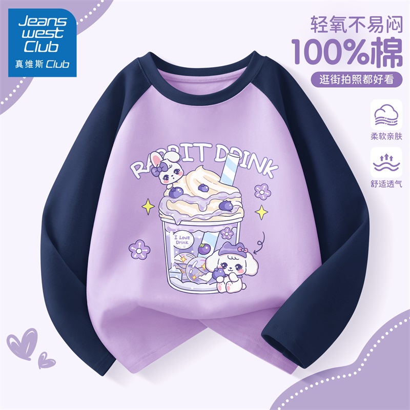 真维斯club女童长袖t恤2025新款儿童春秋款纯棉上衣超好看打底衫