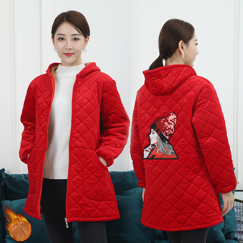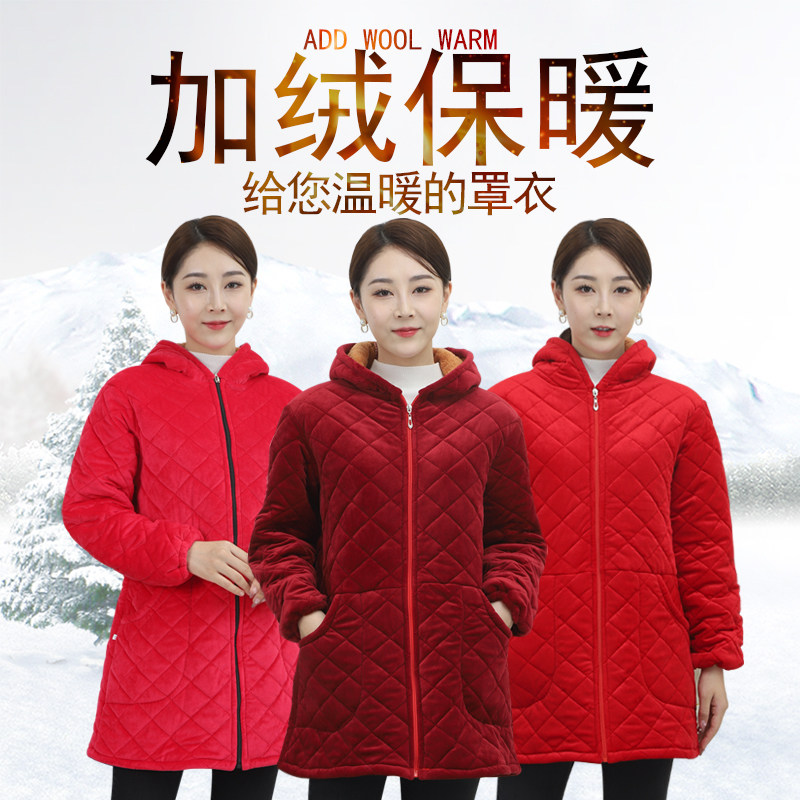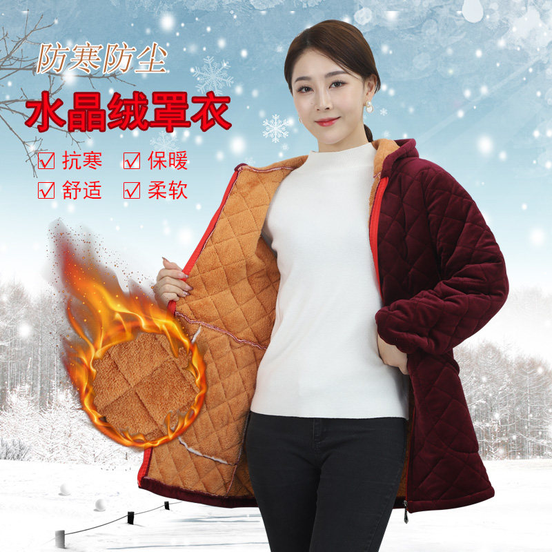罩衣女冬加绒加厚中长款防寒保暖