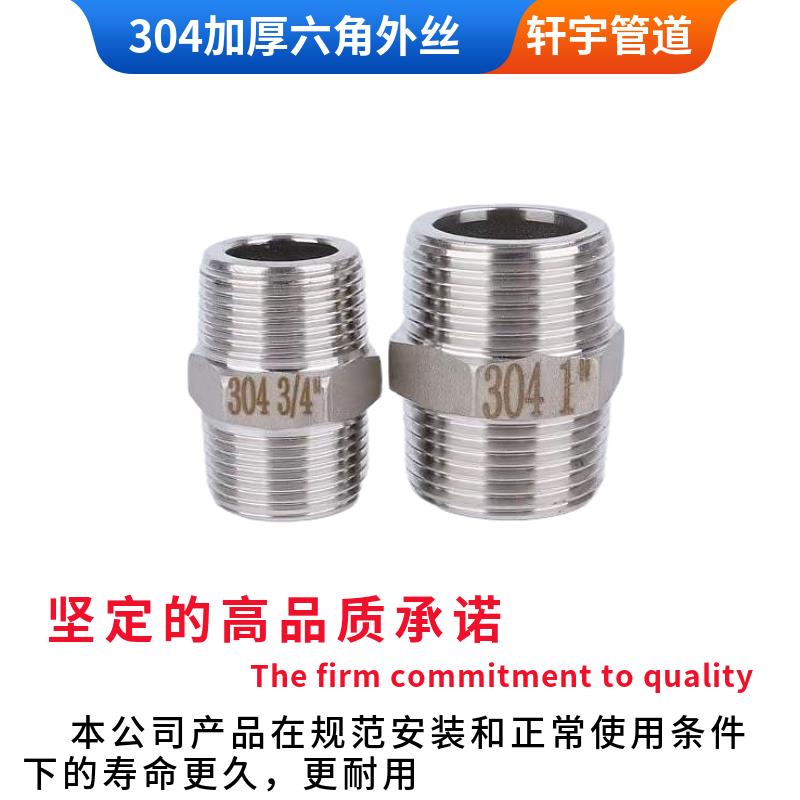 304不锈钢六角对丝双头外丝直接直通4分6分1寸外牙水管螺纹接头