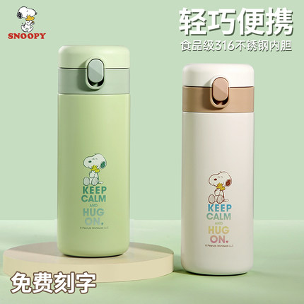 史努比儿童保温杯316食品级水杯直饮女孩小学生上学专用水壶便携