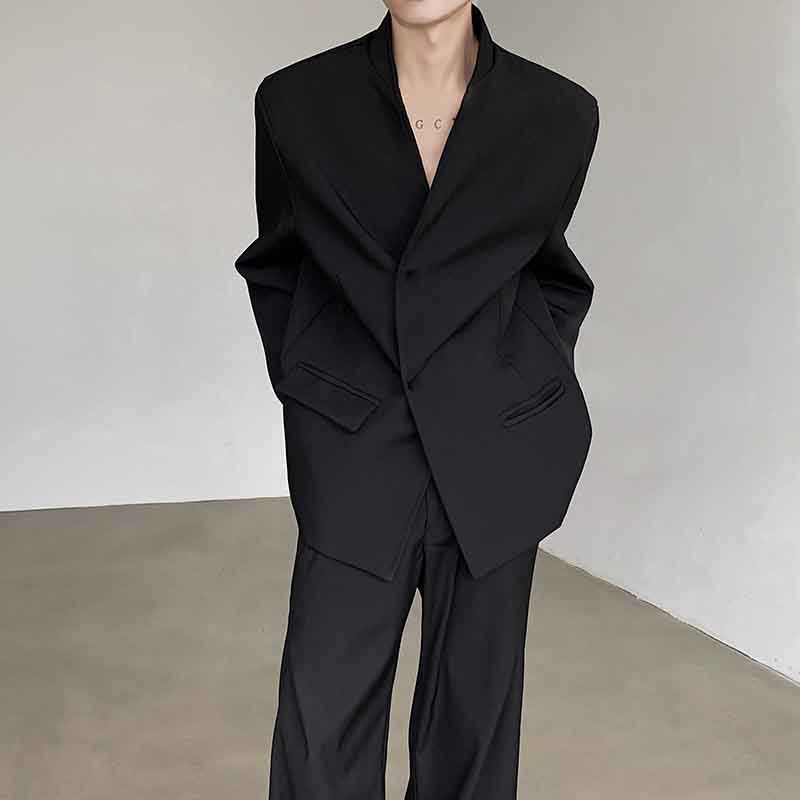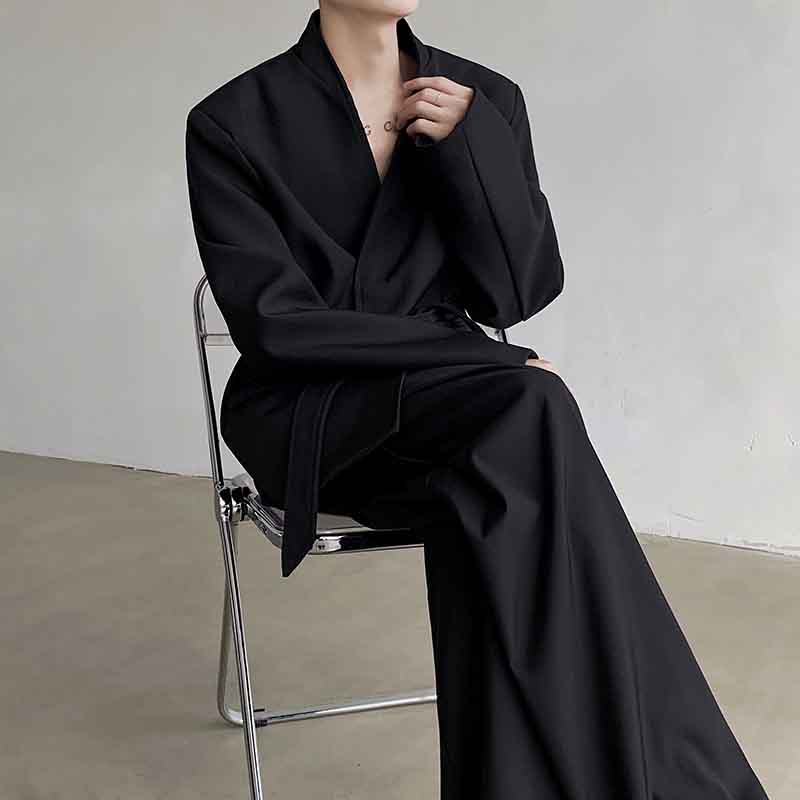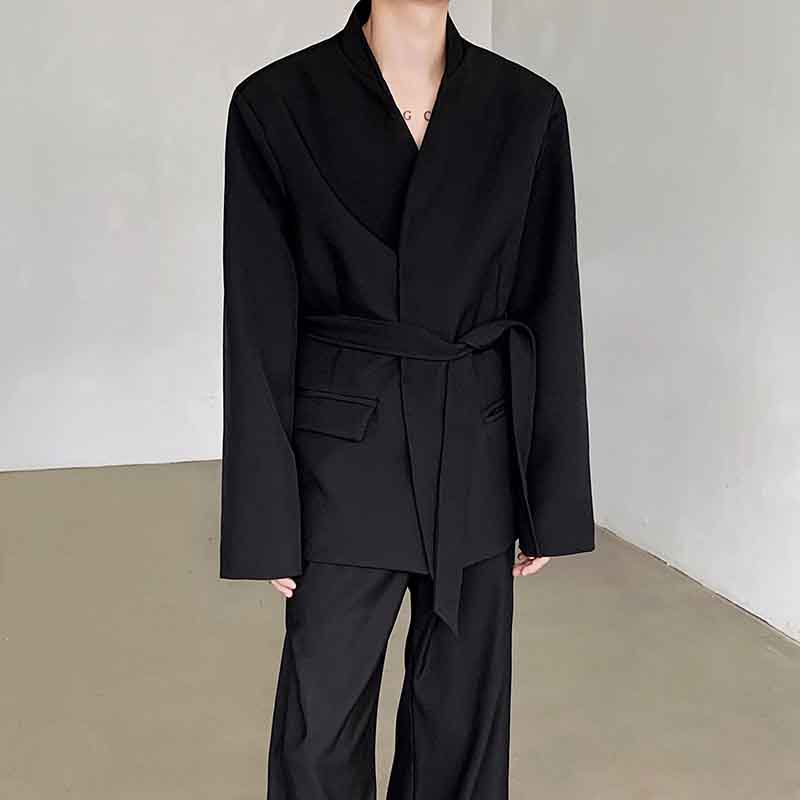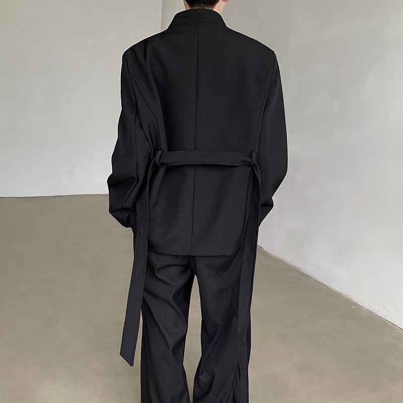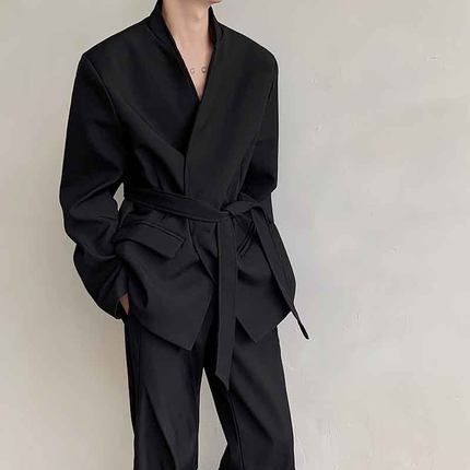 春季小众禁欲系无领西装男高级感痞帅智性风穿搭腰带设计西服外套