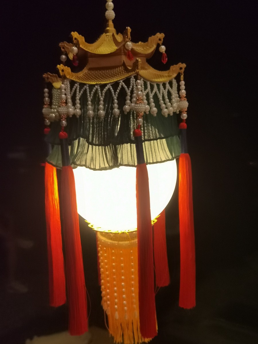中国风复古仿羊角发光绛纱灯汉服拍摄道具长流苏手提古风宫灯成品