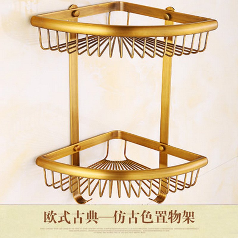 全铜三角篮卫生间三角架 金色转角架壁挂 双层网篮置物架浴室挂件